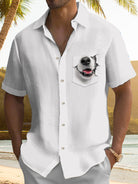 Alohadaddy® Casual Dog Art Print Chest Pocket Men's Short Sleeve Shirt Big & Tall