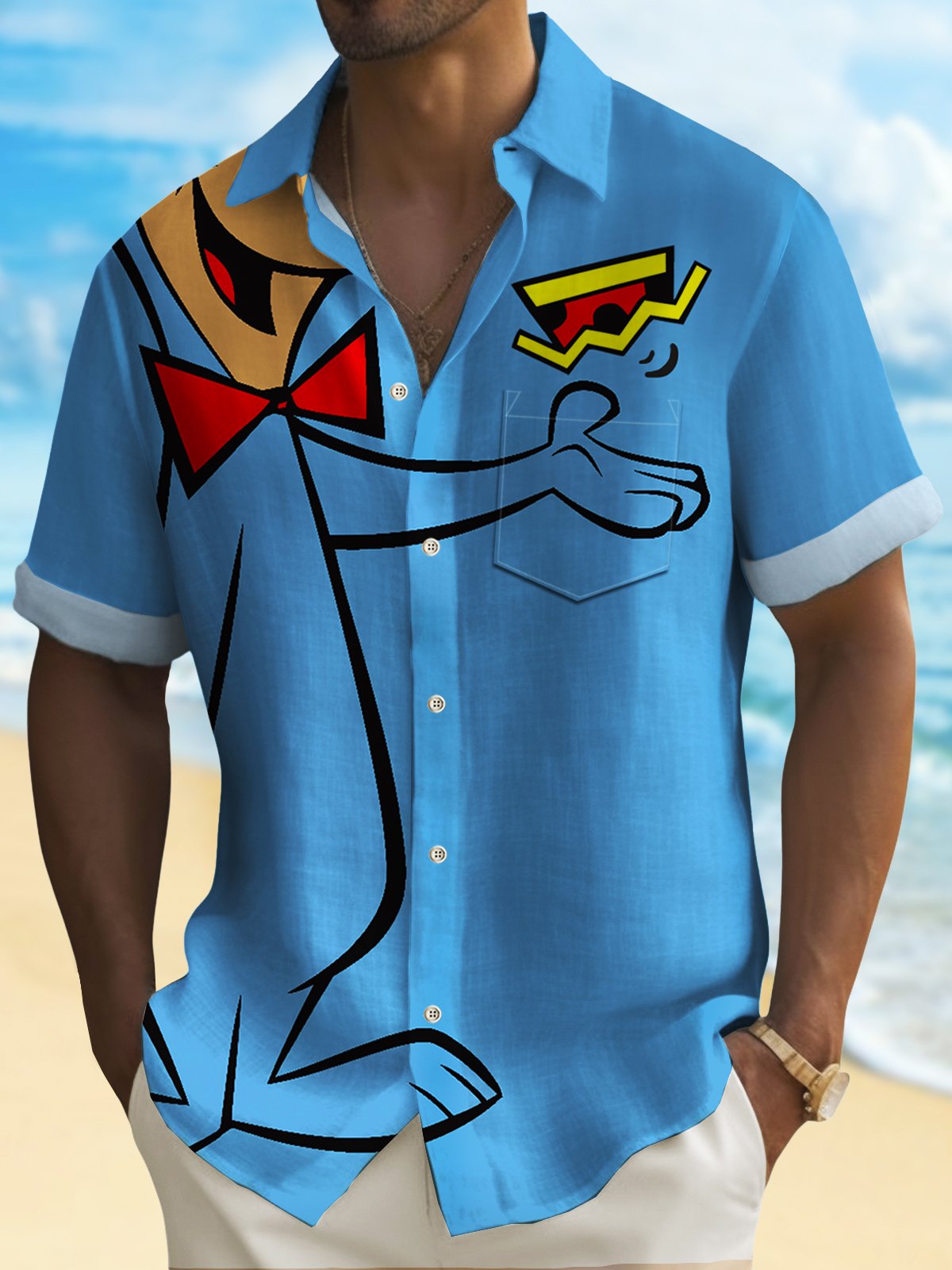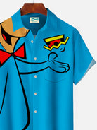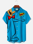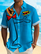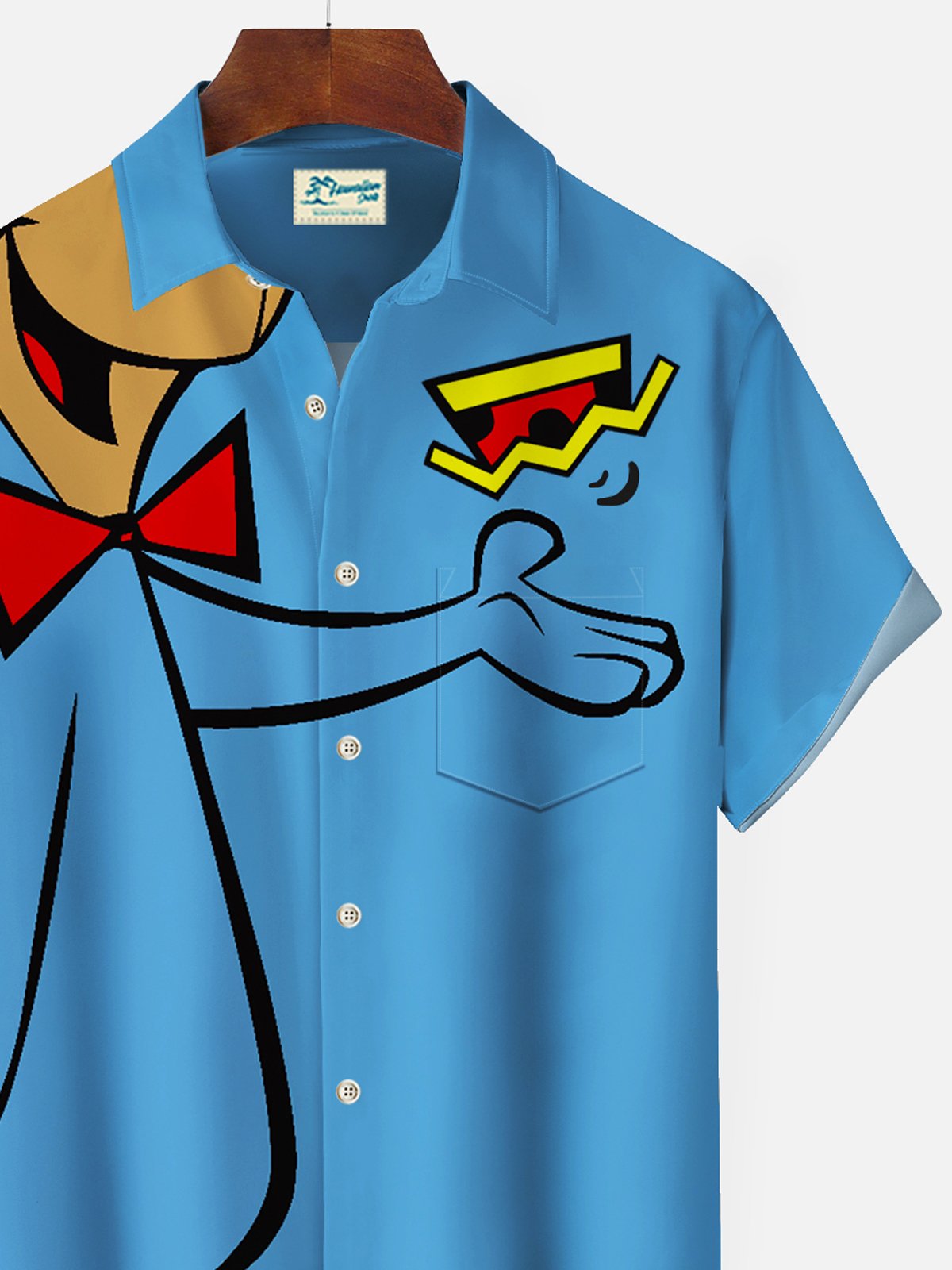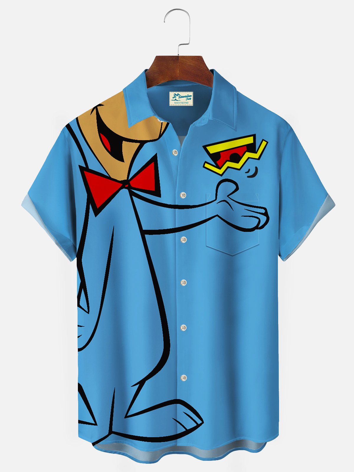 Alohadaddy 50's Vintage Game Cartoon Dog Blue Men's Hawaiian Shirts Stretch Costume Aloha Camp Pocket Shirts
