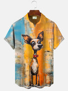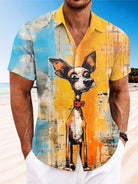 Alohadaddy Animals Funny Animals Dog Oil Painting Art Men Pocket Buttons Casual Short Sleeve Shirt
