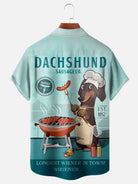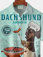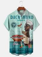 Alohadaddy Retro 60s Cartoon Hot Dog BBQ 3D Print Men's Button Pocket Short Sleeve Shirt Big & Tall