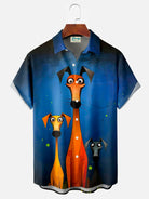 Alohadaddy Retro Dog 3D Digital Print Men's Button Pocket Short Sleeve Shirt Big & Tall