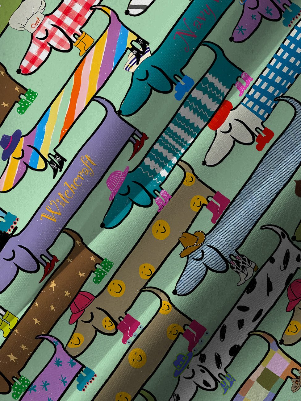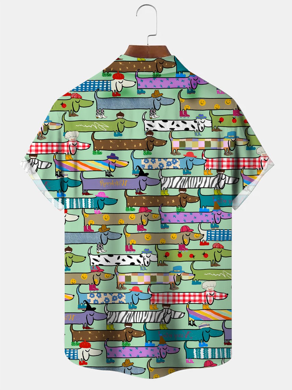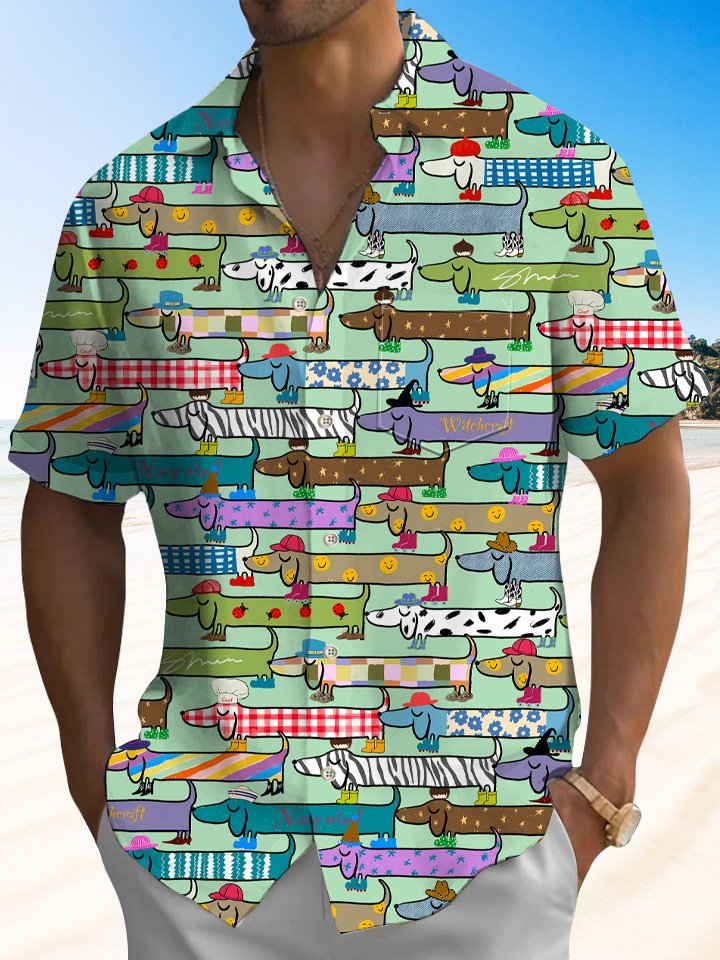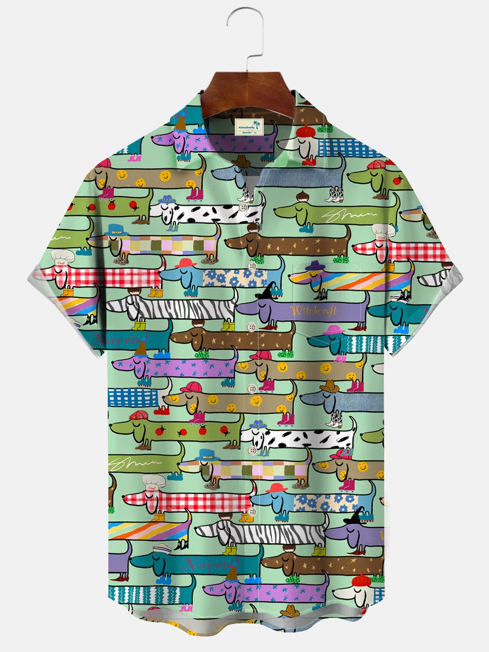 Alohadaddy Summer Funny Hot Dog Art Men Button Pocket Casual Vacation Short Sleeve Shirt