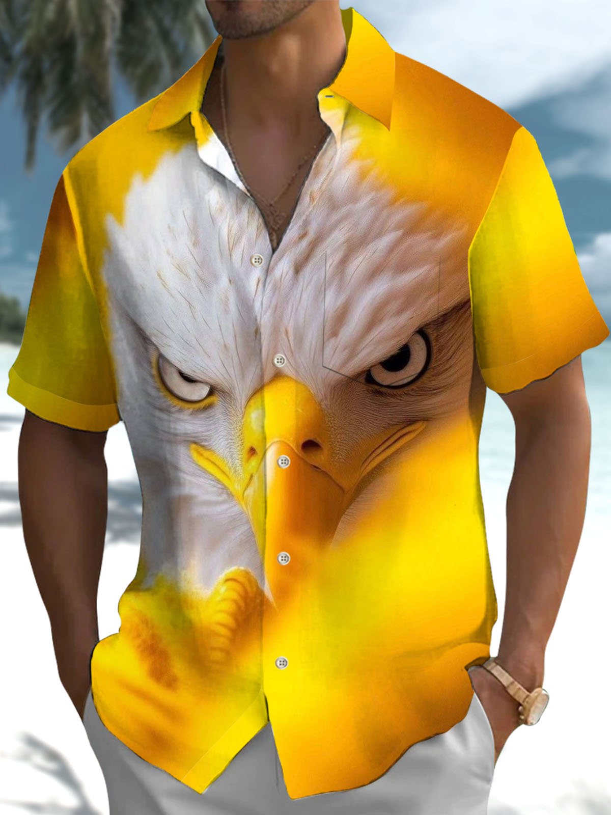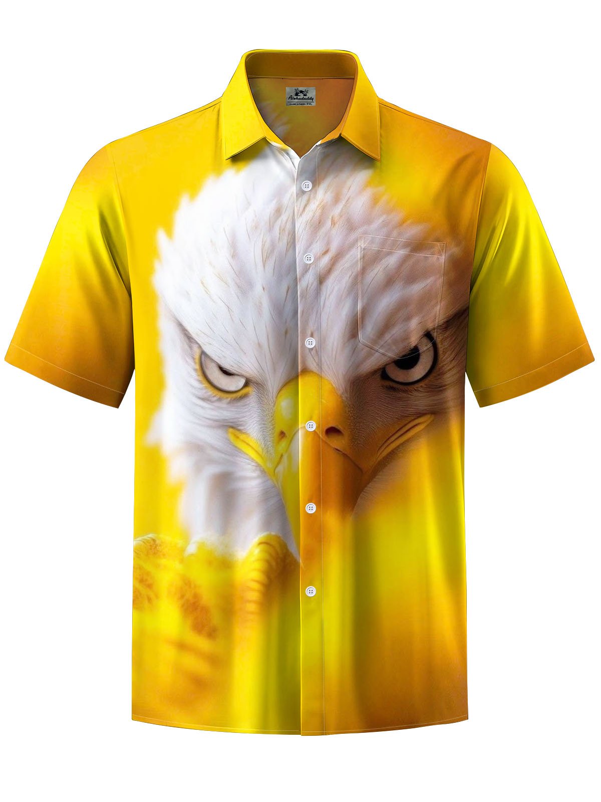 Alohadaddy® Casual Eagle Print Art Pocket Stretch Men's Short Sleeve Shirt Big & Tall