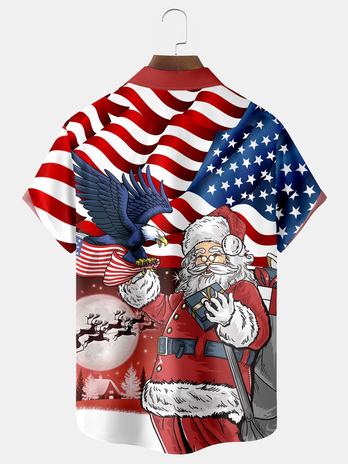 Alohadaddy Flag Eagle Santa Claus Print Men's Hawaiian Oversized Shirt with Pockets