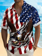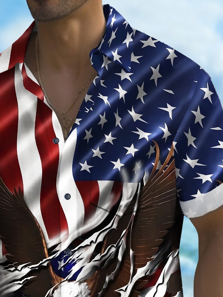 Alohadaddy Holiday Men's Independence Day Flag Eagle Print Casual Breathable Short Sleeve Shirt Big Tall