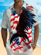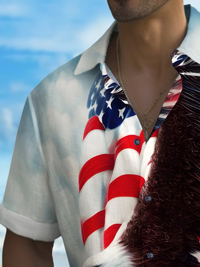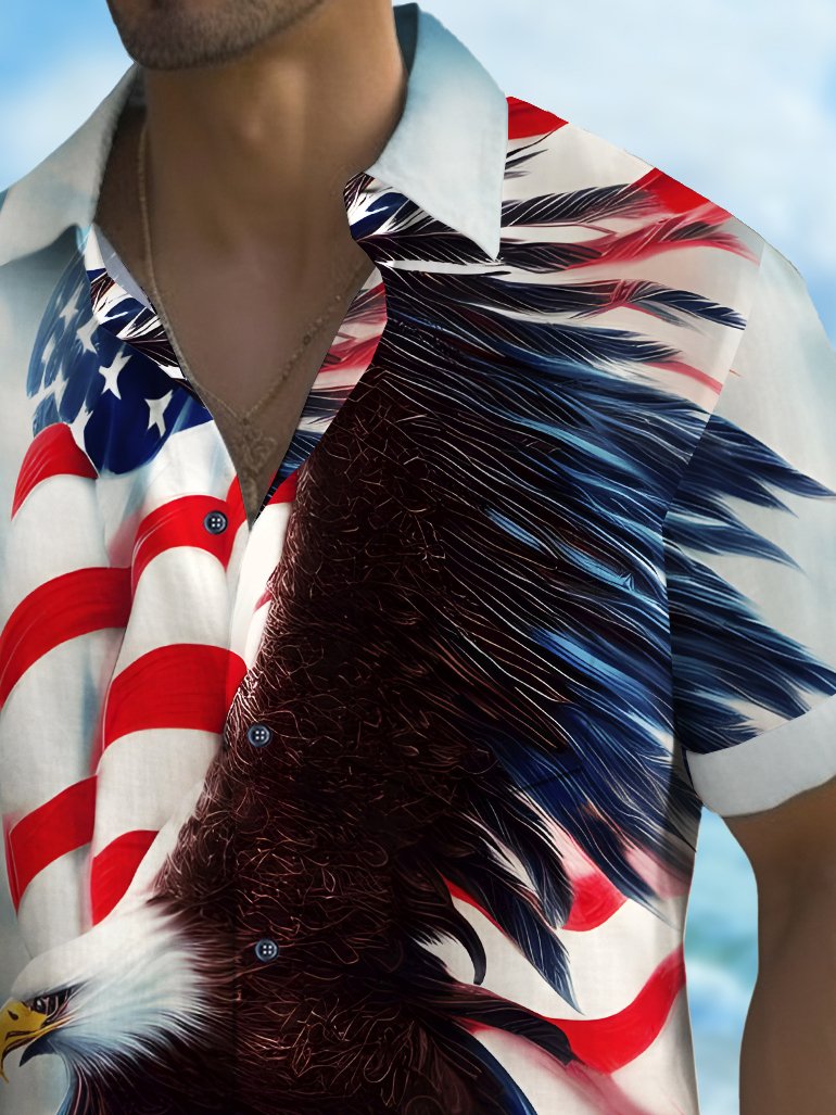 Alohadaddy Holiday Men's Independence Day Flag Eagle Print Casual Breathable Short Sleeve Shirt Big Tall