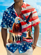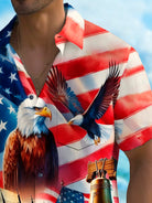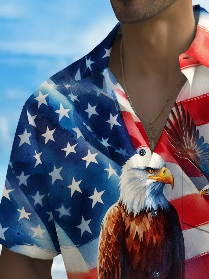 Alohadaddy Holiday Men's Independence Day Flag Eagle Print Casual Breathable Short Sleeve Shirt Big Tall