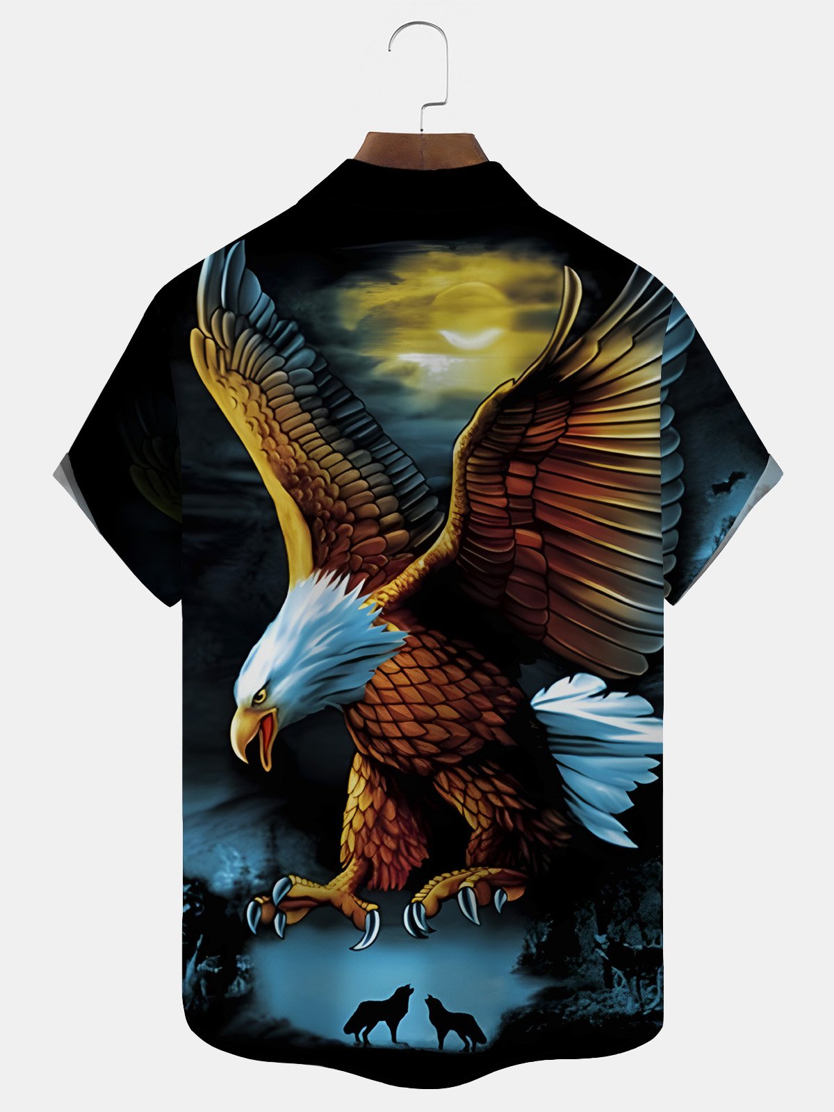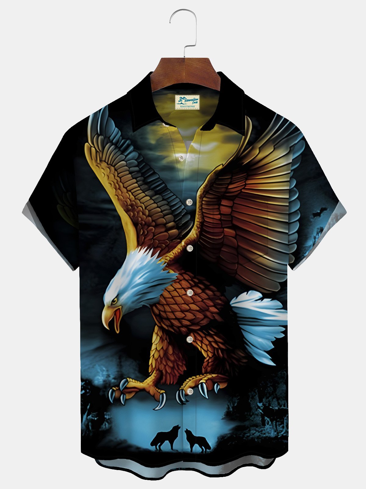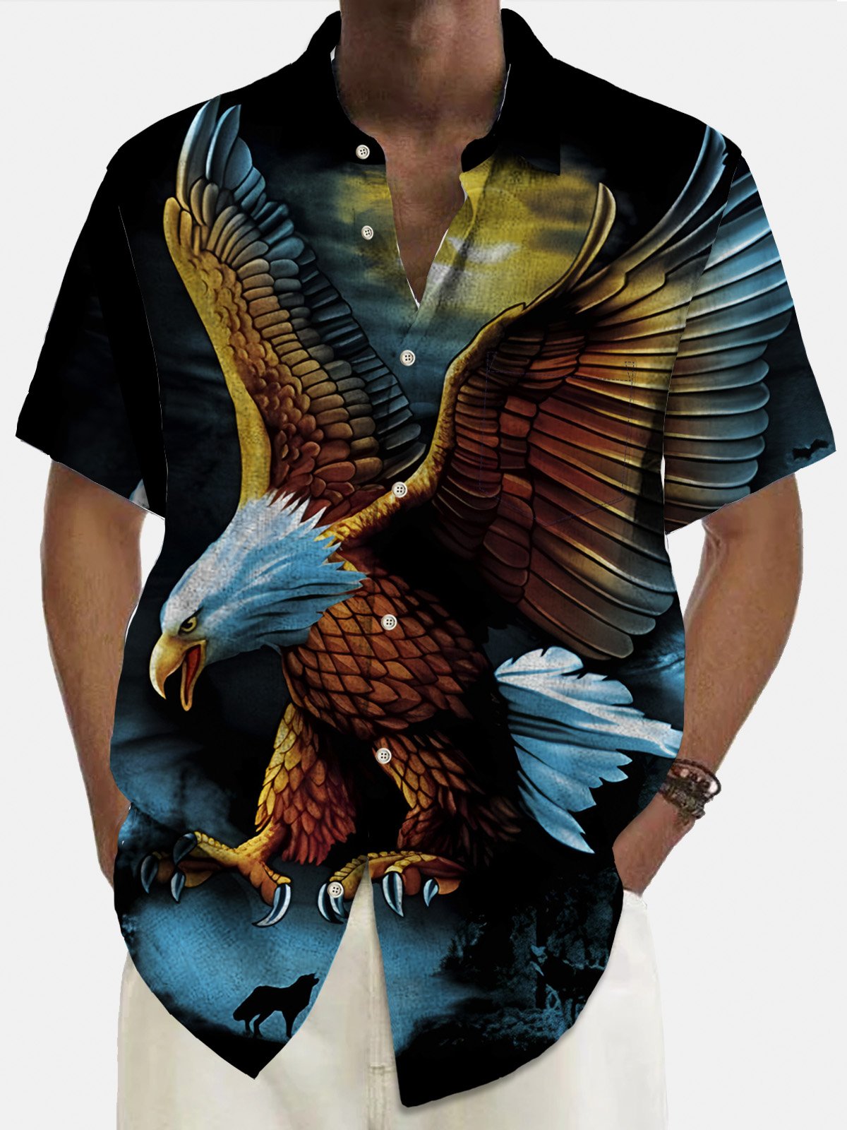 Alohadaddy Vintage Eagle Cartoon Men's Casual Shirts Art Aloha Button Pocket Animal Shirts