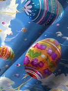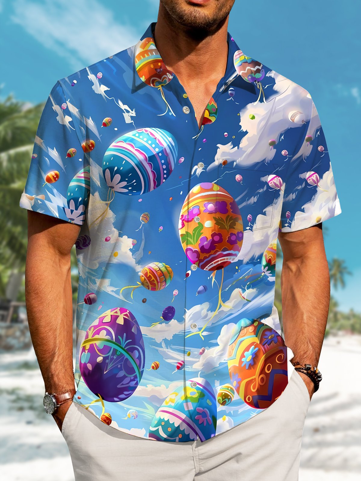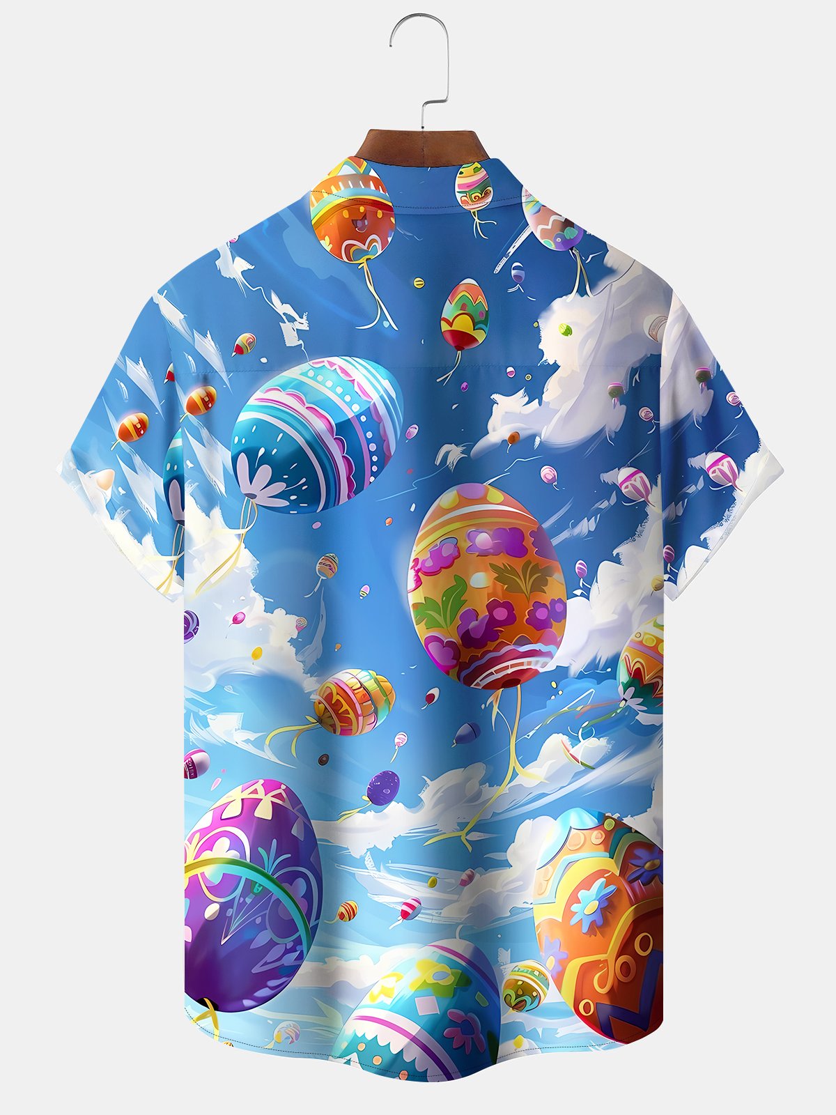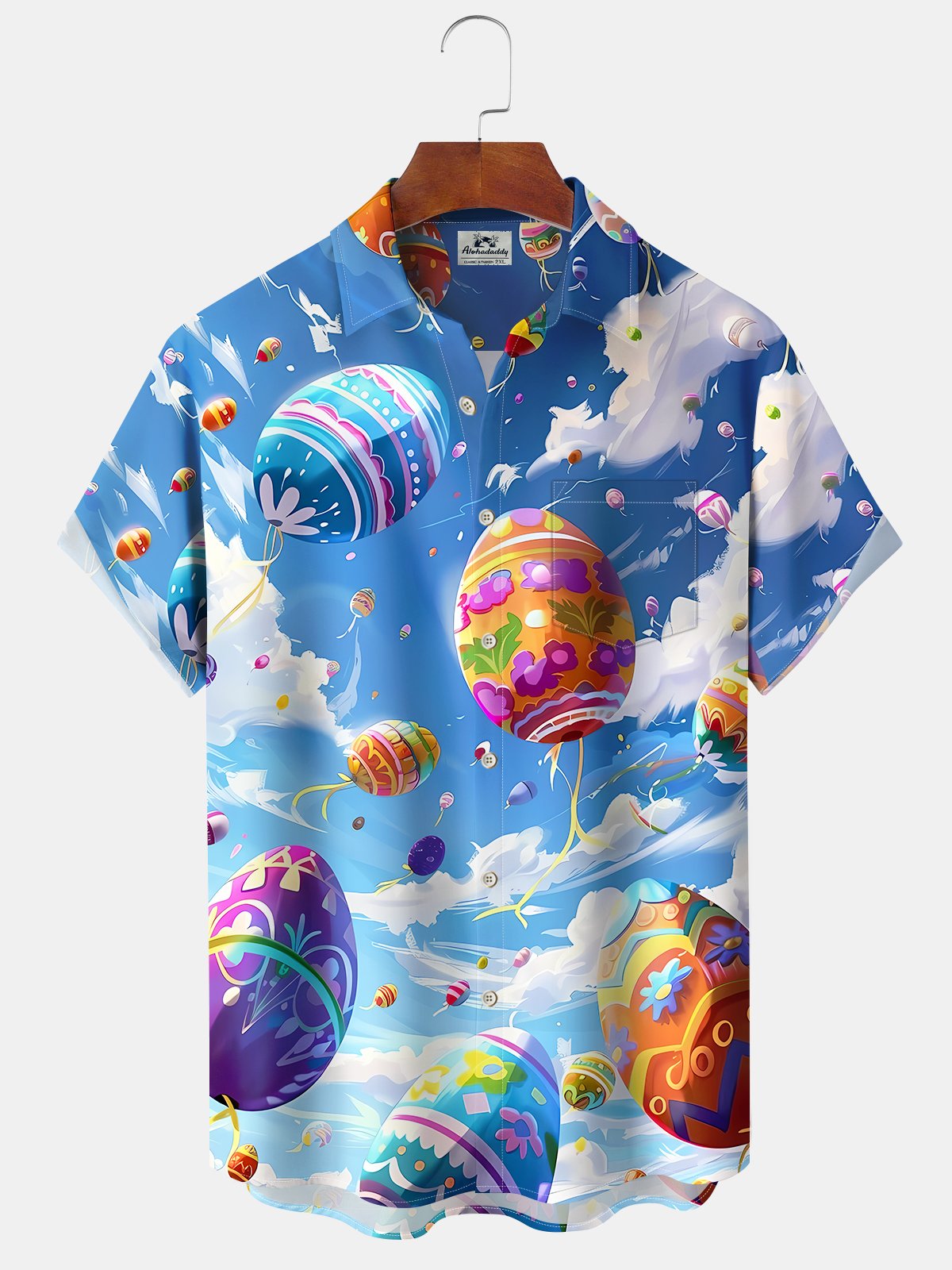 Alohadaddy Hawaii Easter Easter Egg Blue Sky Print Art Pocket Buttons Plus Size Stretch Shirt