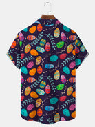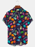 Alohadaddy Easter Egg Print Men's Button Pocket Short Sleeve Shirt
