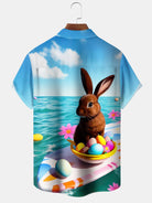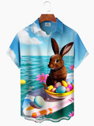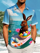 Alohadaddy Hawaiian Easter Bunny Print Art Pocket Button Stretch Large Size Shirt
