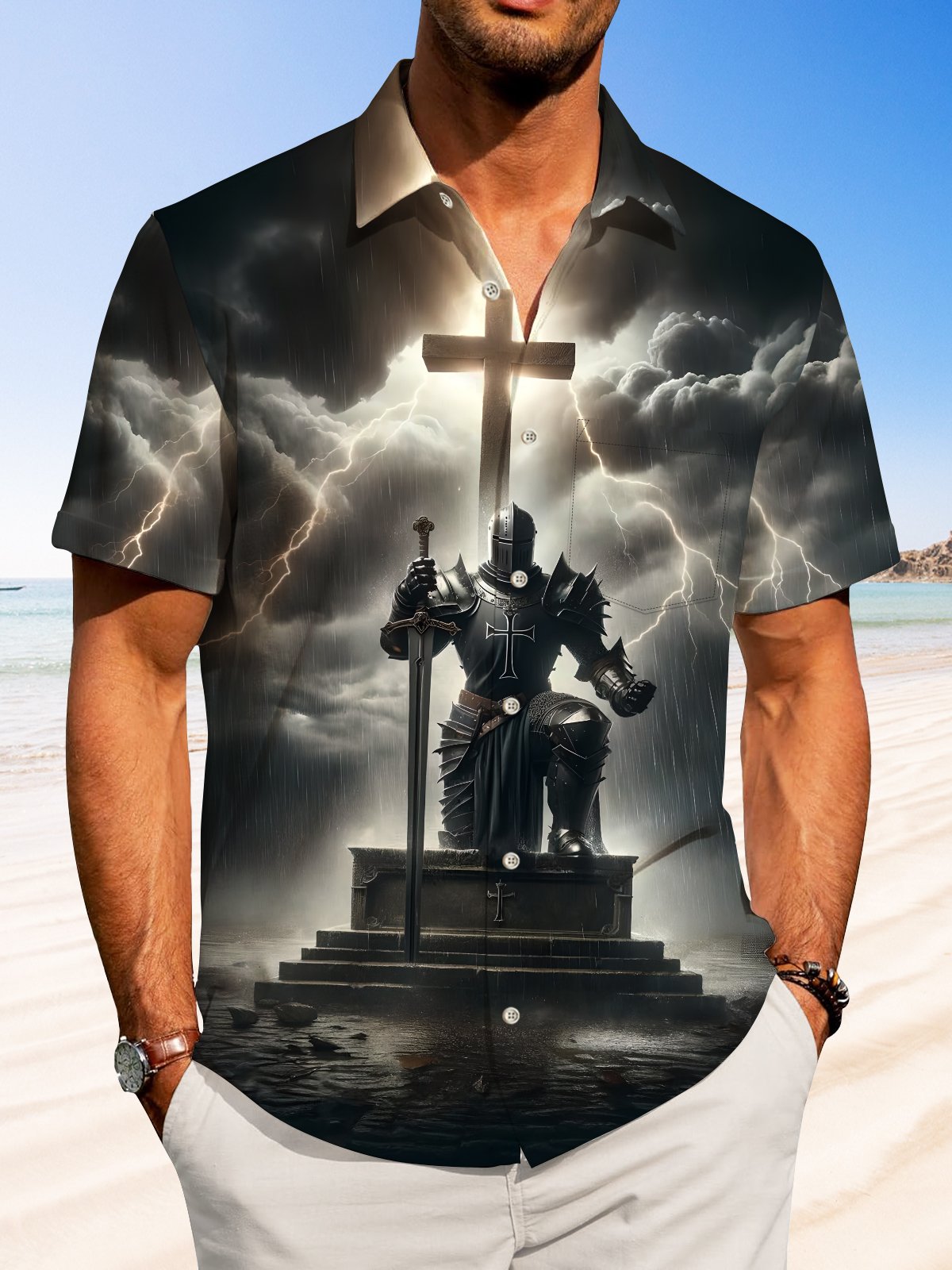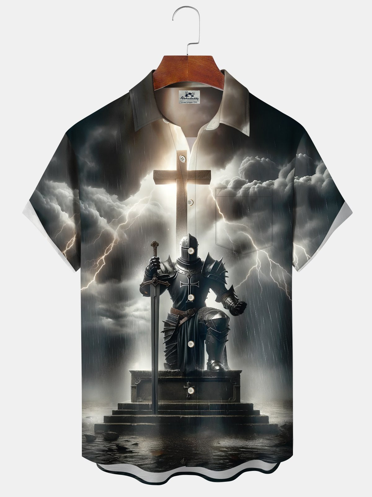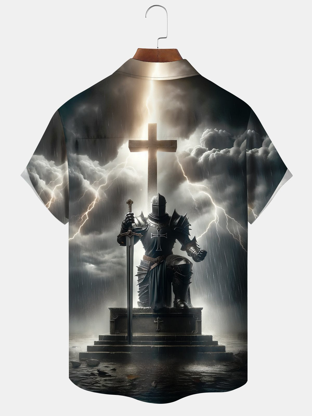 Alohadaddy Holiday Collection Easter Cross Print Art Button Cardigan Pocket Stretch Oversized Short Sleeve Shirt