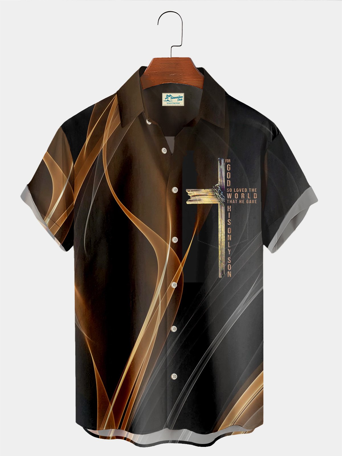 Alohadaddy Holiday Easter Cross Aurora Print Chest Bag Shirt Plus Size Black Shirt