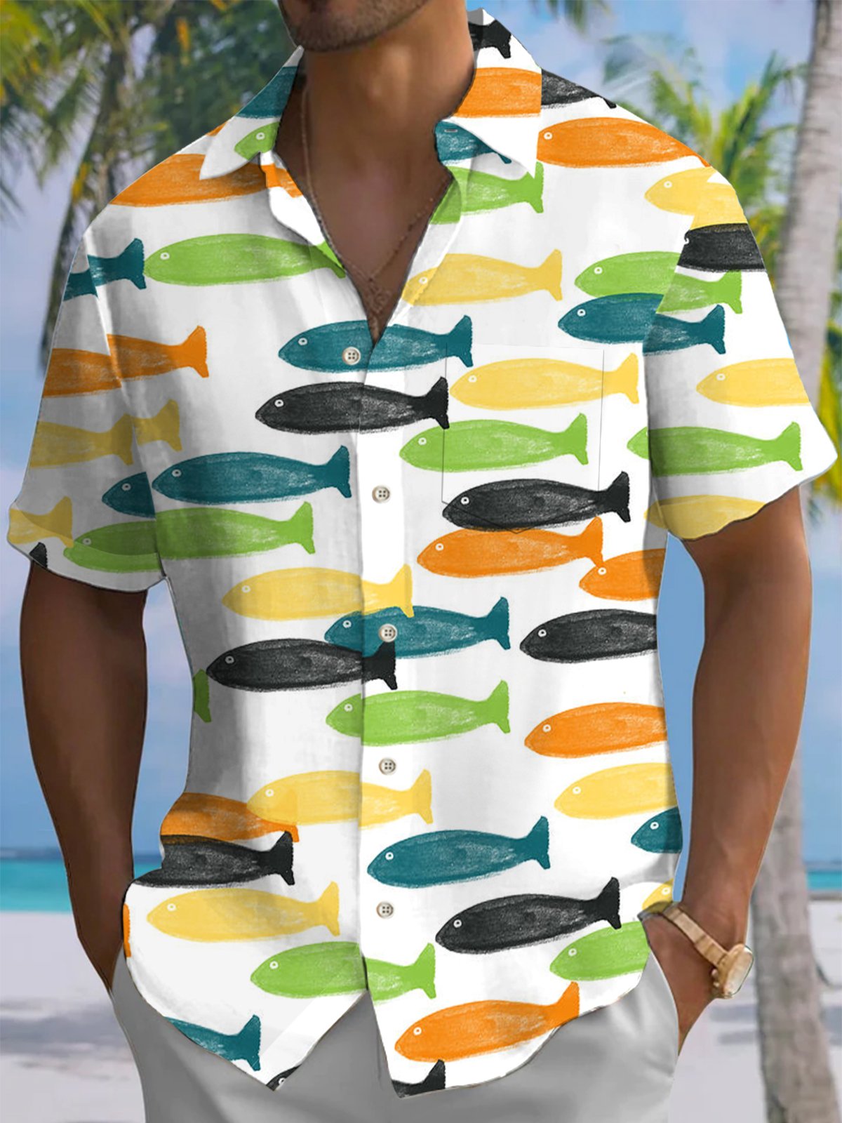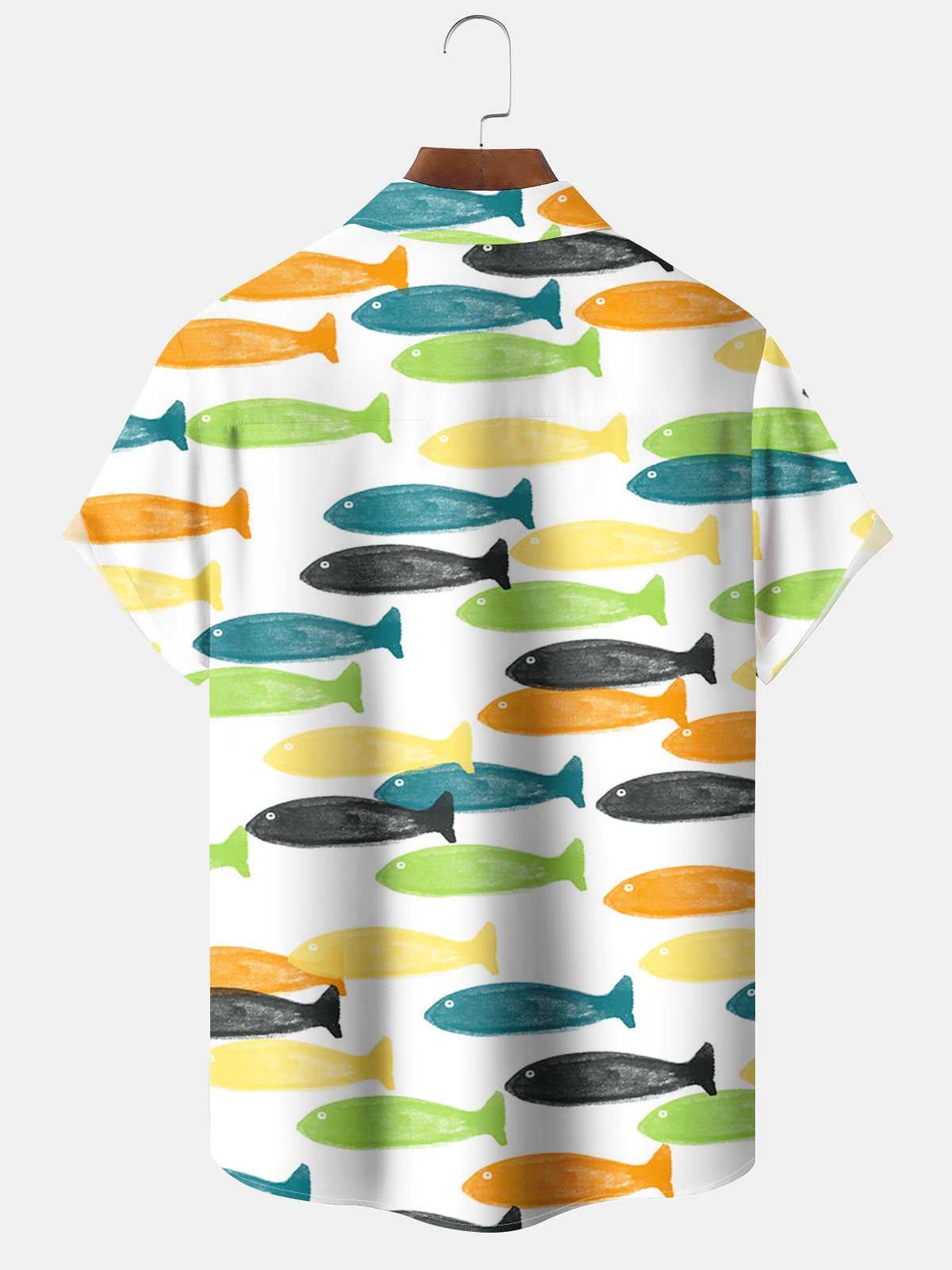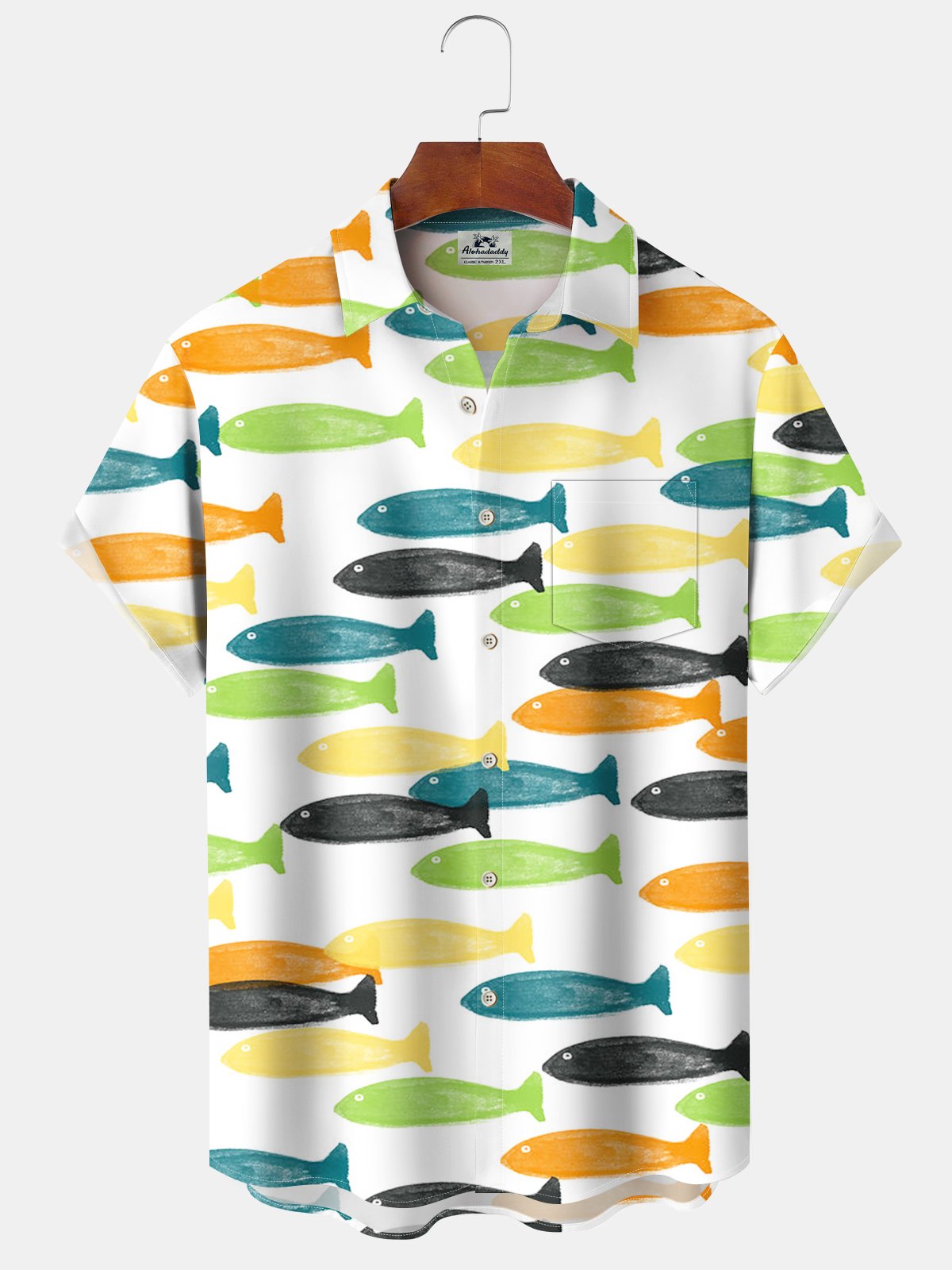 Alohadaddy® Casual Geometric Fish Pocket Button Stretch Men's Short Sleeve Shirt Big & Tall