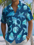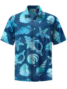 Alohadaddy® Hawaiian Conch Art Print Chest Pocket Men's Short Sleeve Shirt Big & Tall
