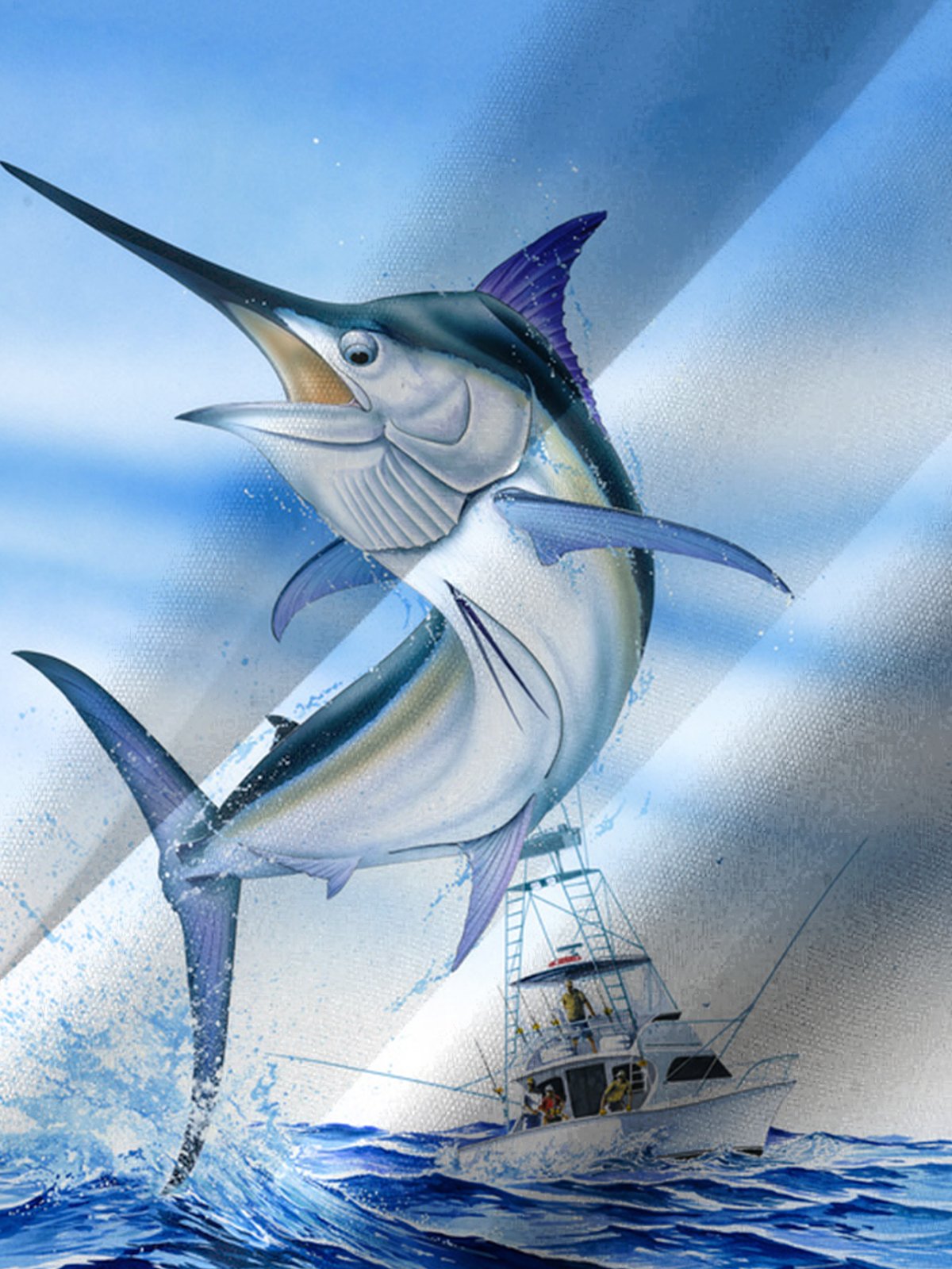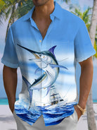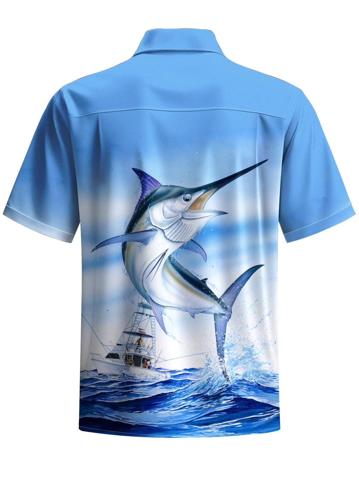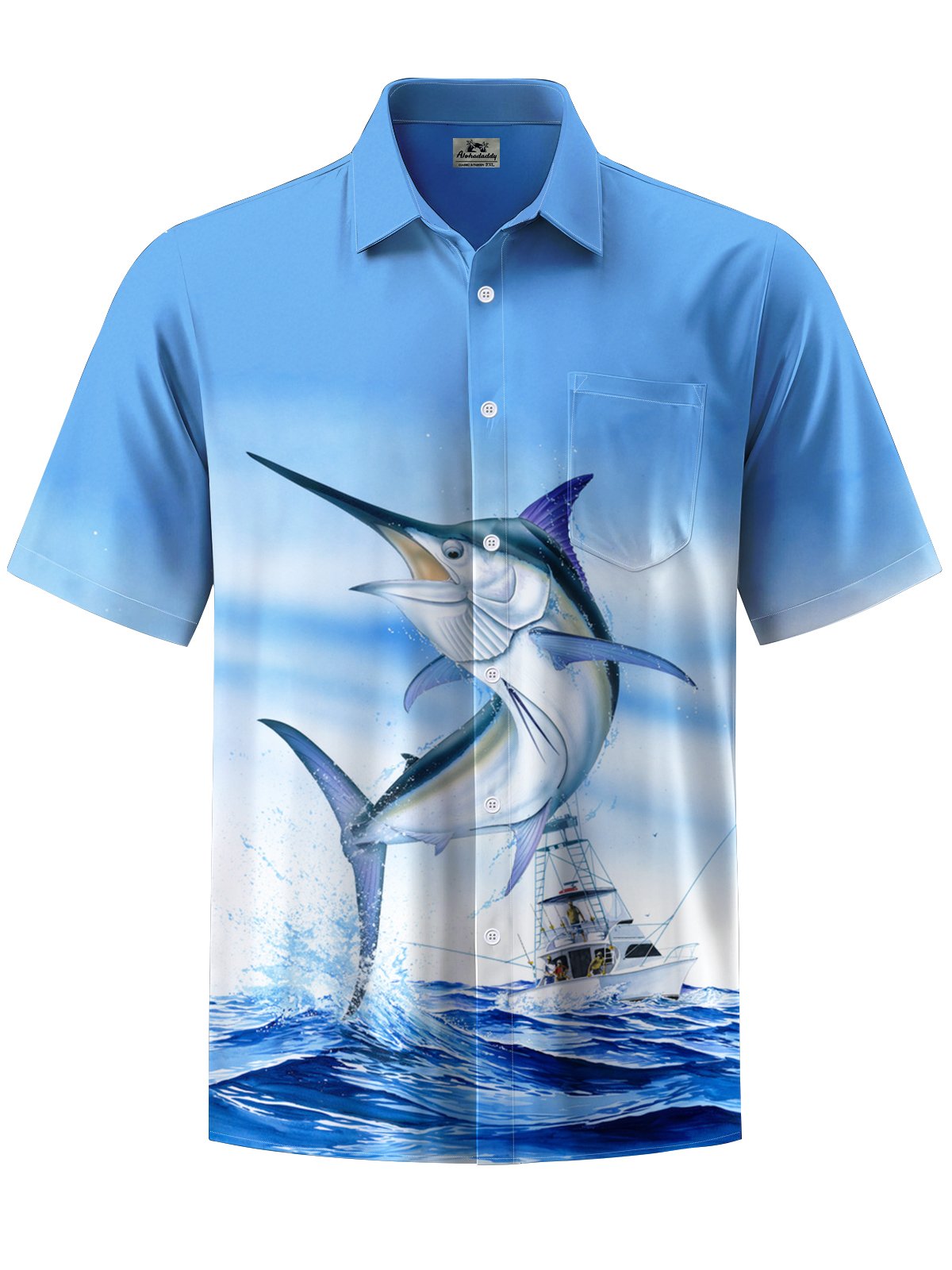 Alohadaddy® Hawaiian fish and sailboat print with chest pocket for men's stretch short-sleeved shirt Big & Tall