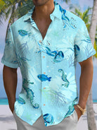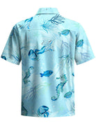 Alohadaddy® Hawaiian Ocean Seahorse Print Chest Pocket Men's Short Sleeve Shirt Big & Tall