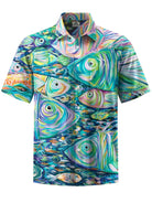 Alohadaddy® Men's Casual Fish Art Print Chest Pocket Short Sleeve Shirt Big & Tall