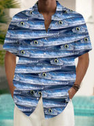 Alohadaddy® Men's Casual Fish Art Print Chest Pocket Short Sleeve Shirt Big & Tall