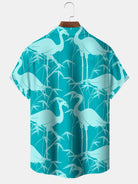 Alohadaddy® Casual Flamingo Stripes Resort Art Print Chest Pocket Moisture Wicking Oversized Hawaiian Shirt