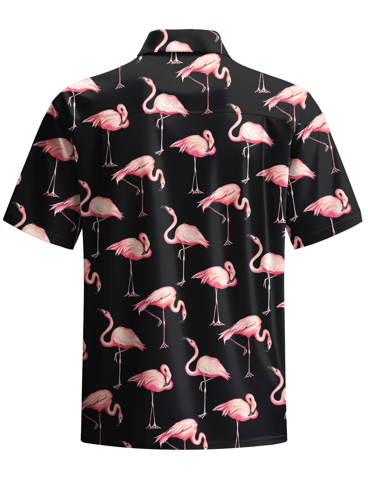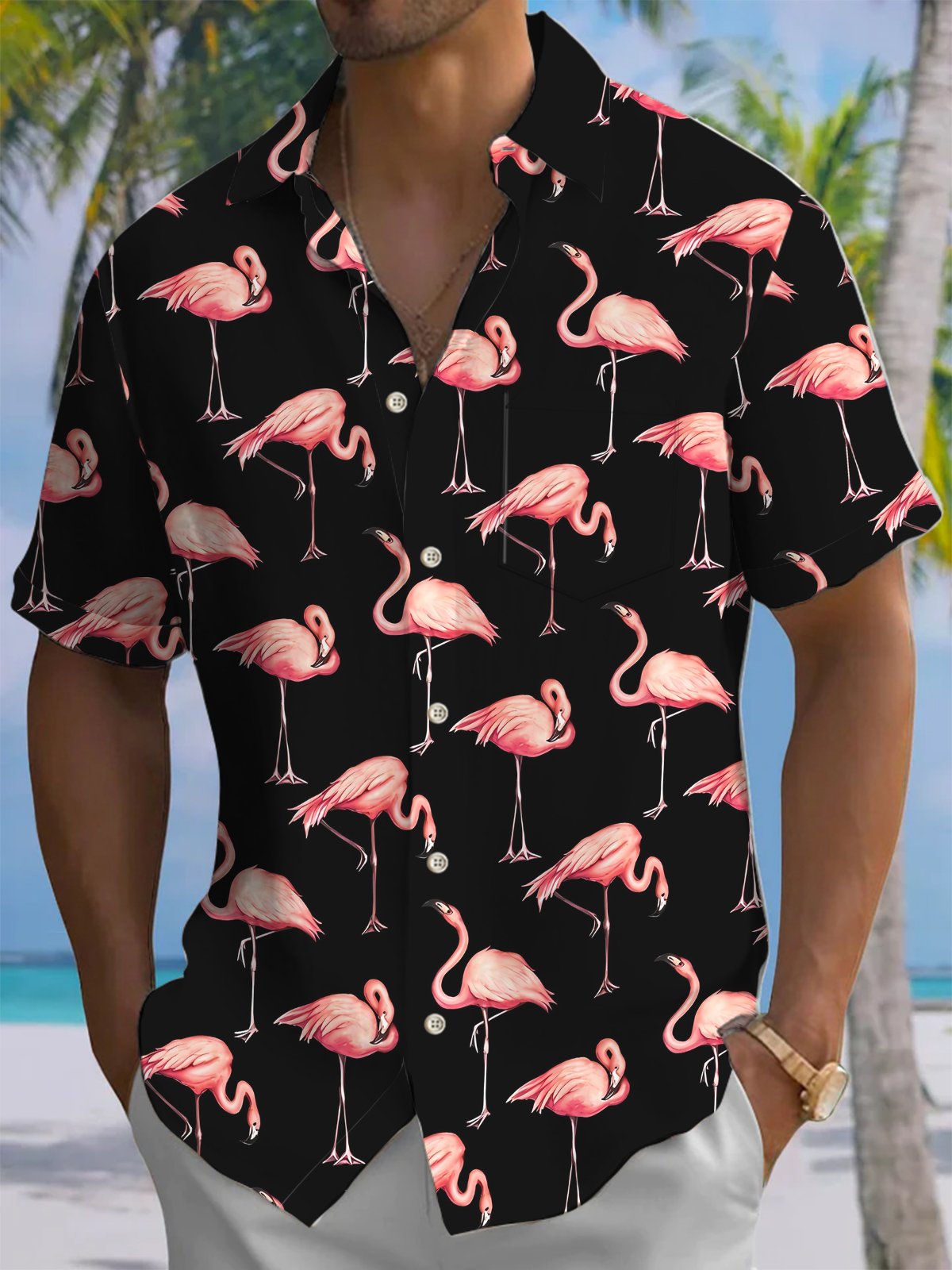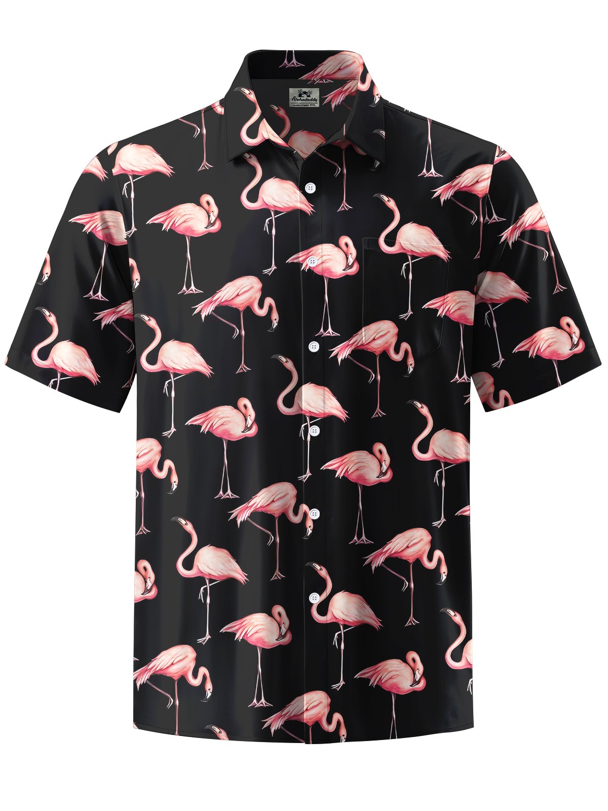Alohadaddy® Hawaiian Flamingo Art Print Chest Pocket Mens Short Sleeve Shirt Big & Tall