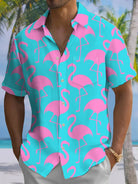 Alohadaddy® Hawaiian Flamingo Art Print Chest Pocket Men's Short Sleeve Shirt Big & Tall