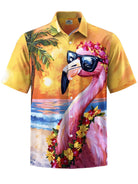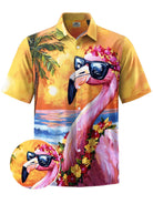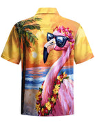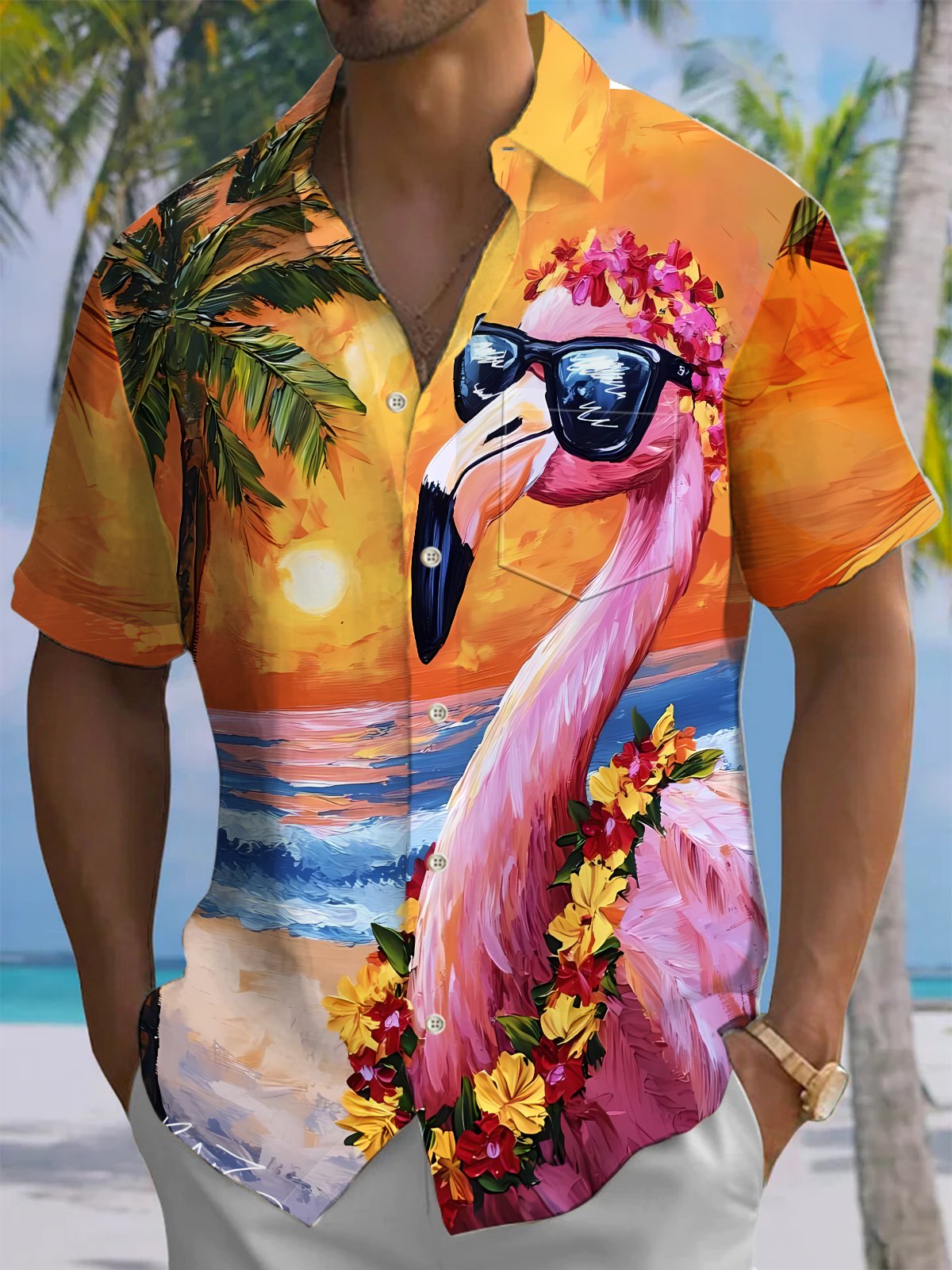 Alohadaddy® Hawaiian Flamingo Print Chest Pocket Stretch Men's Short Sleeve Shirt Big & Tall