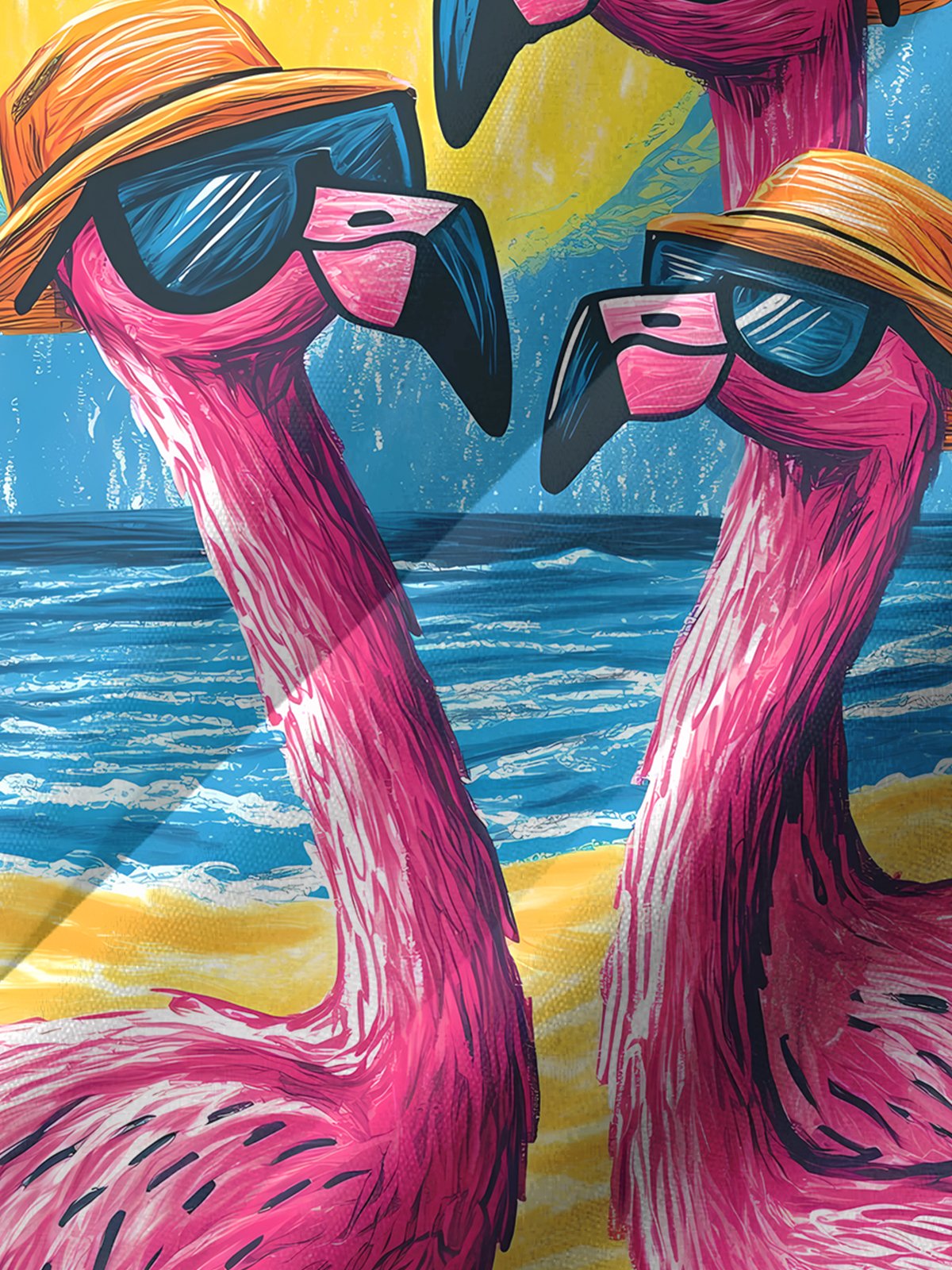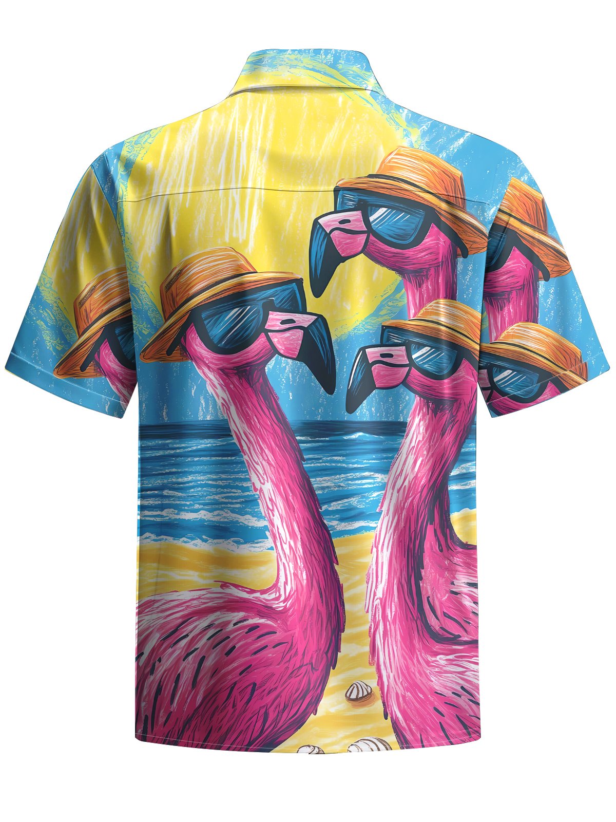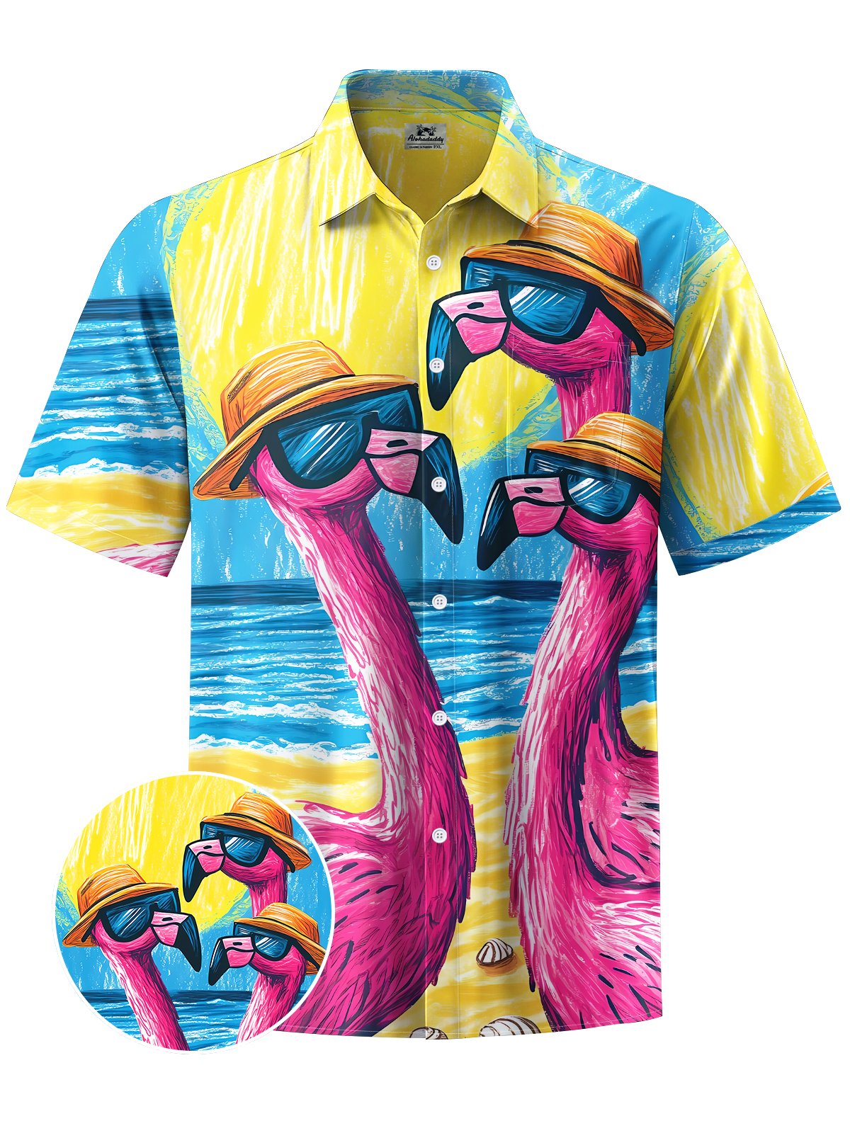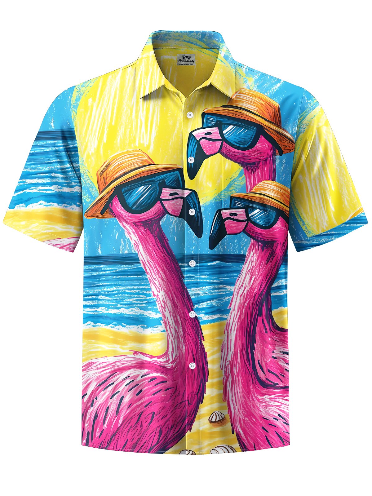 Alohadaddy® Hawaiian Flamingo Vacation Print Pocket Stretch Large Size Men's Short Sleeve Shirt