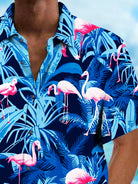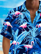 Alohadaddy Beach Vacation Men's Hawaiian Shirt Floral Flamingo Print Pocket Camping Shirt