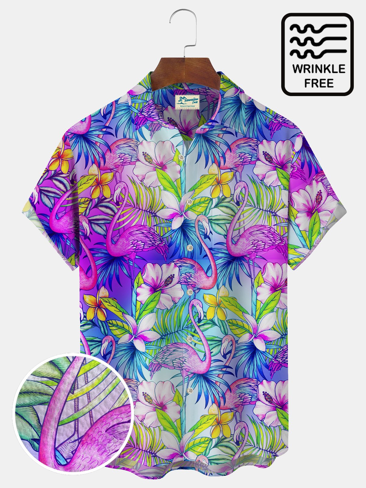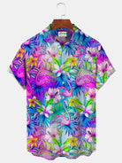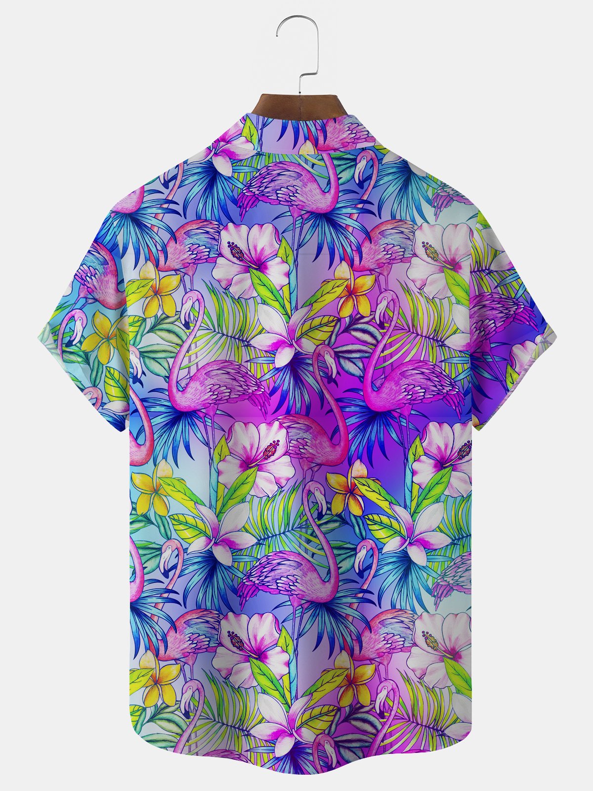Alohadaddy Beach Vacation Pink Flamingo Tropical Men's and Women's Aloha Hawaiian Shirts Stretch Oversized Button Shirts