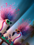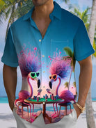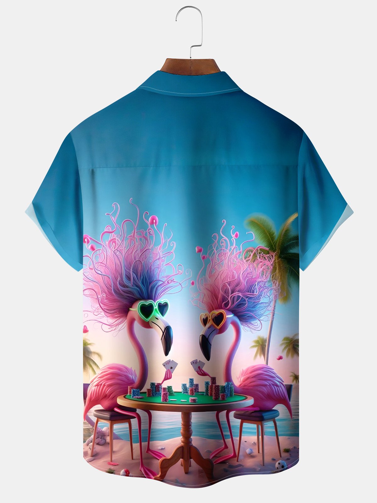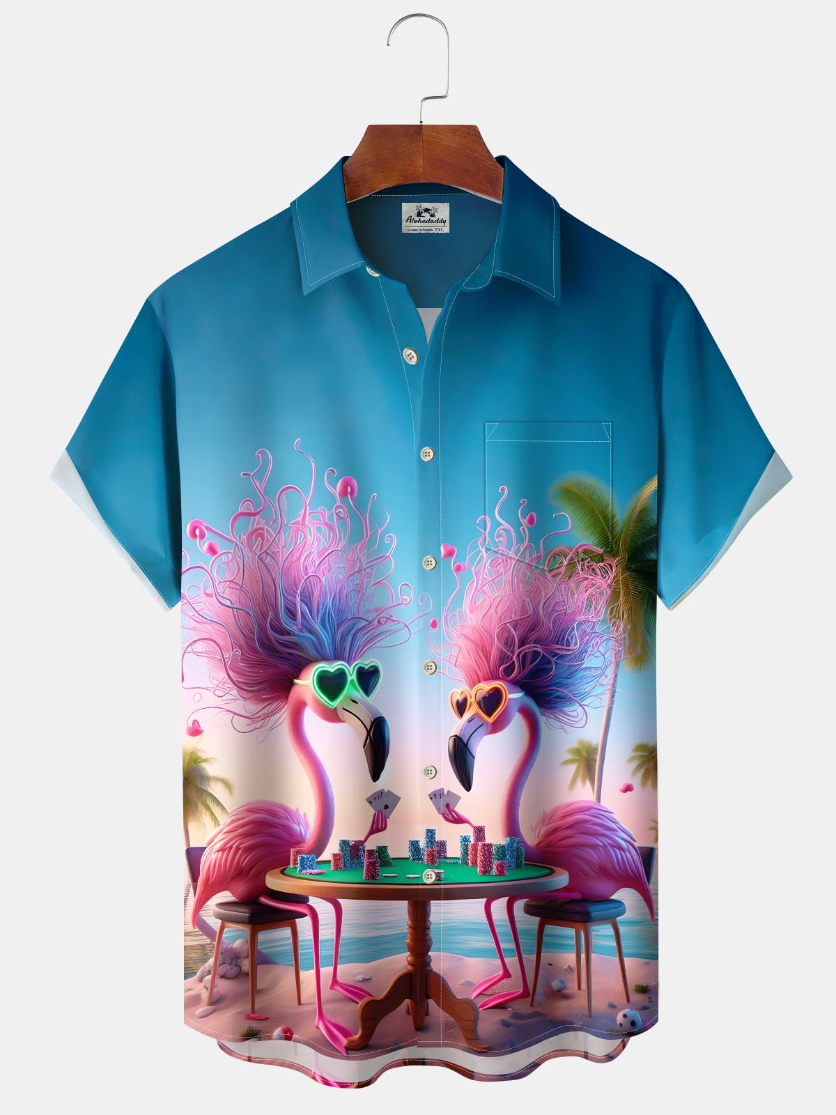 Alohadaddy Casual Collection Hawaiian Vacation Flamingo Print Art Button Cardigan Pockets Fresh Stretch Polyester Short Sleeve Shirt