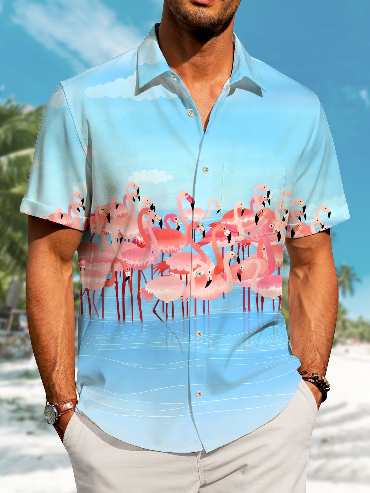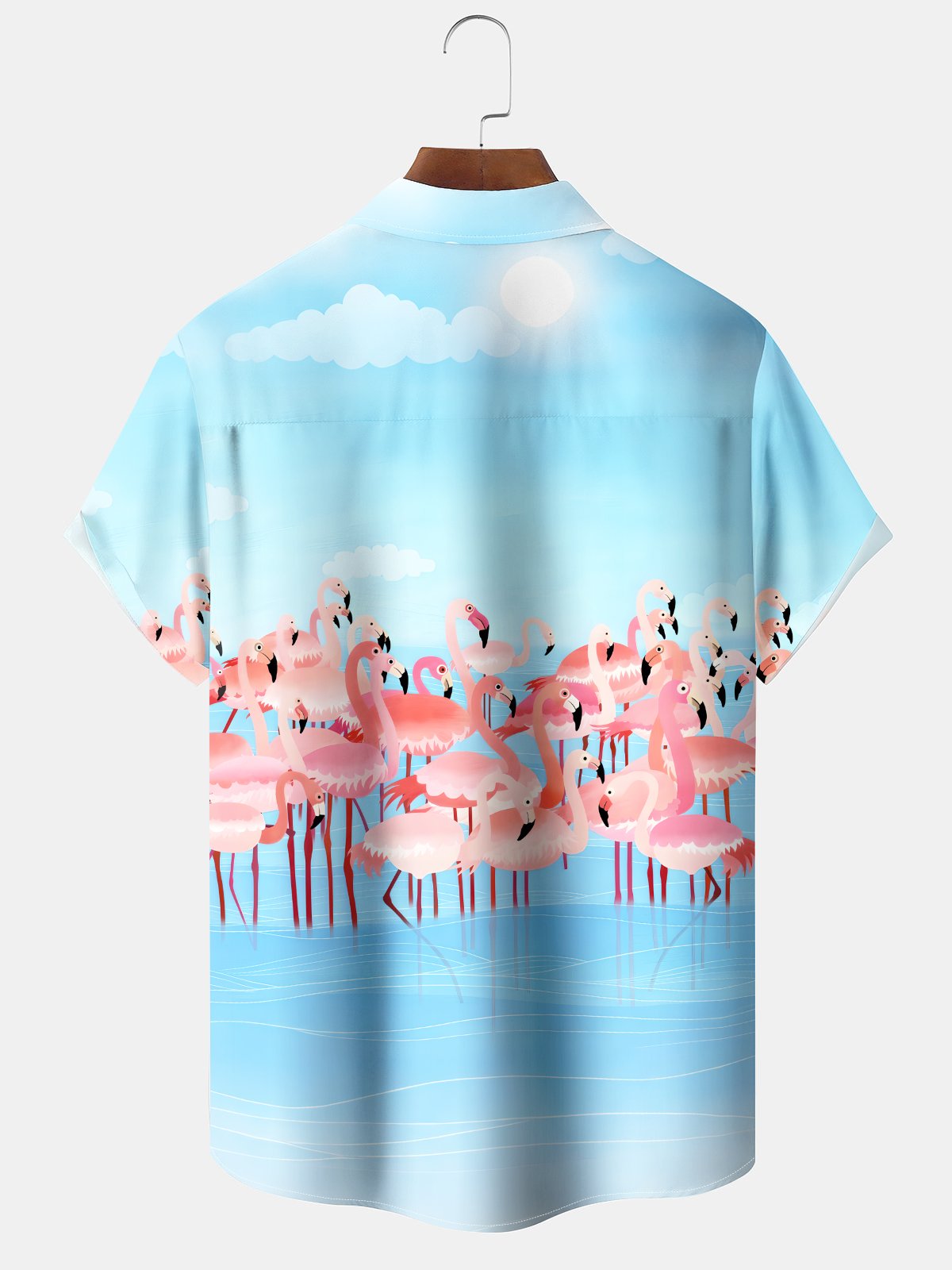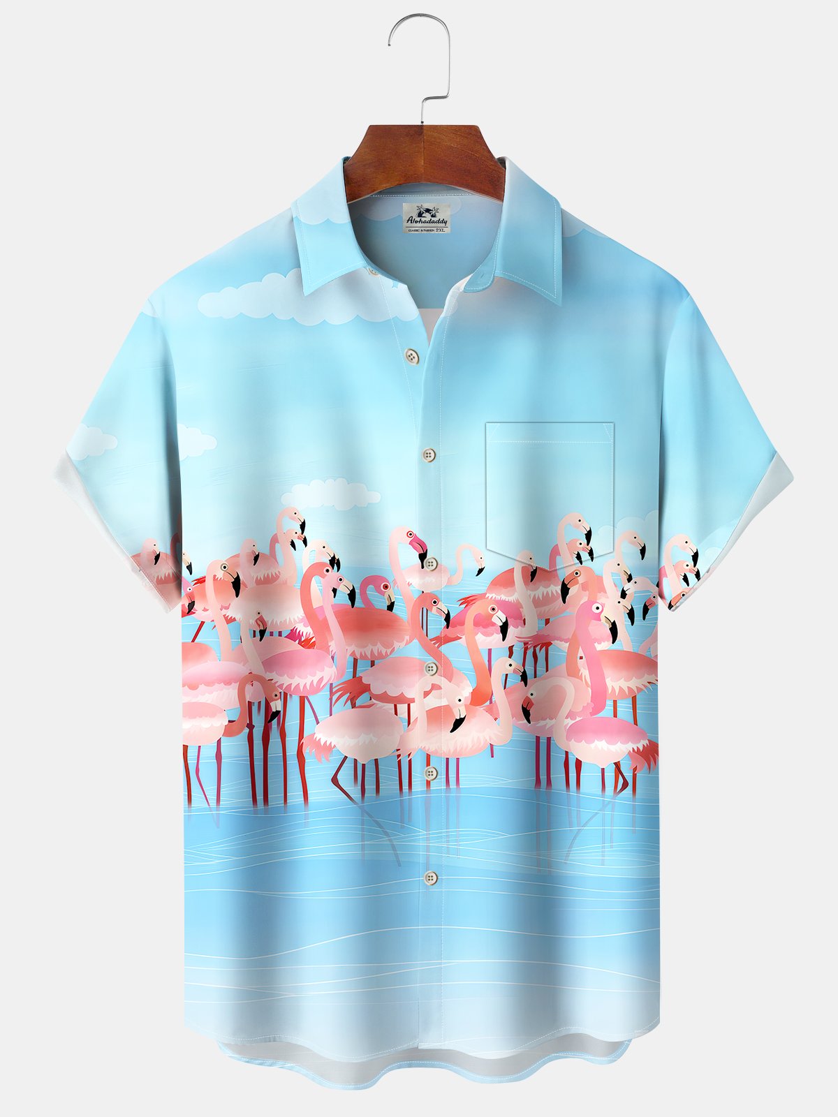 Alohadaddy Casual Hawaiian Flamingo Button Cardigan Pockets Stretch Oversized Short Sleeve Shirt