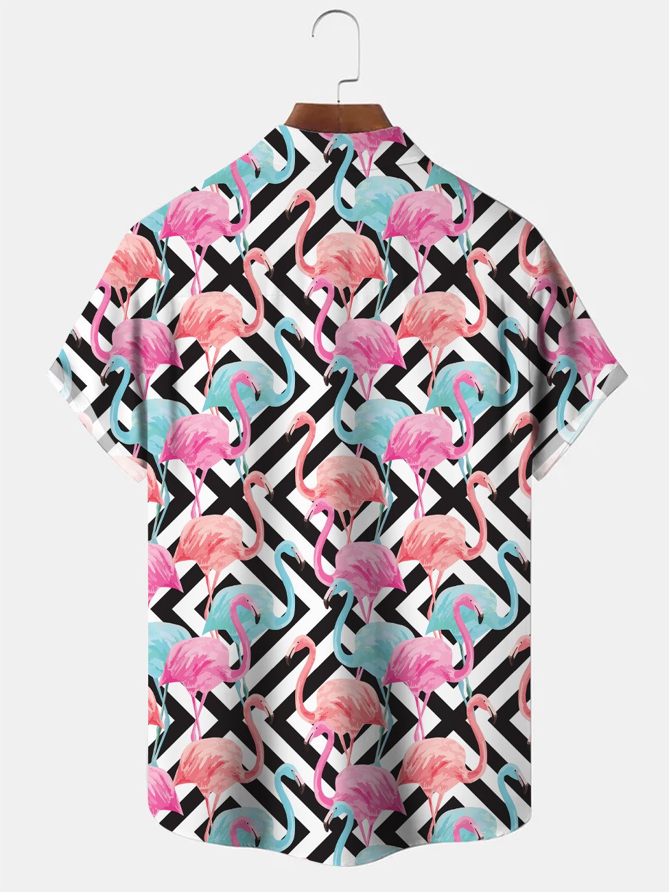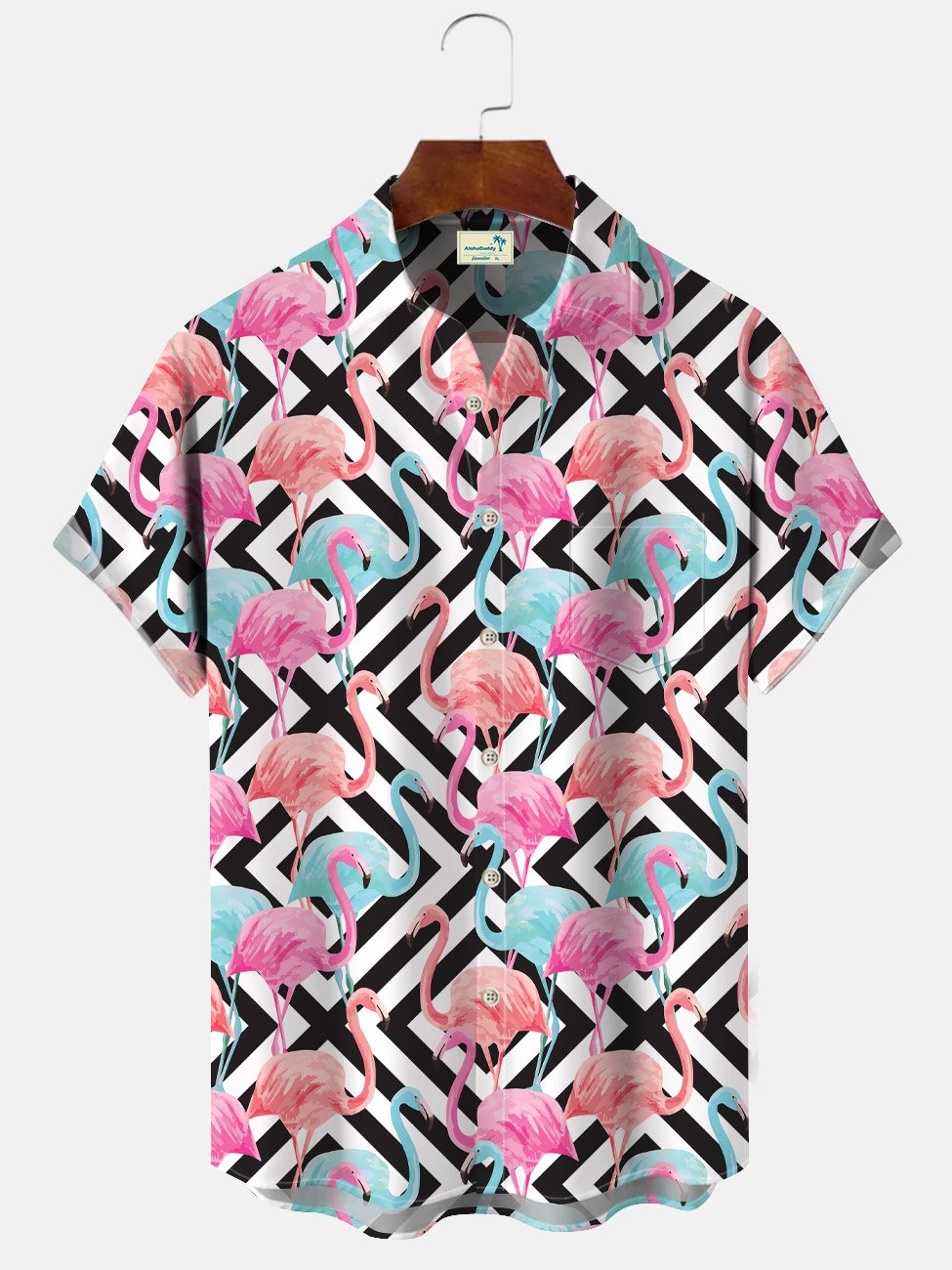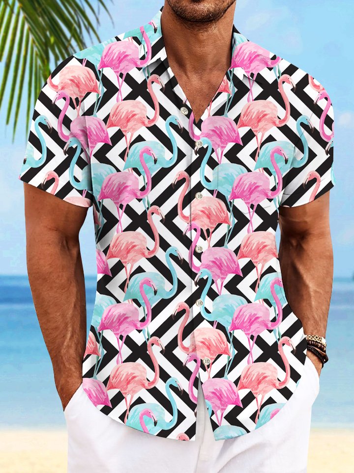 Alohadaddy Flamingo Geometric Pattern Pocket Button Casual Short Sleeve Shirt