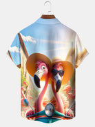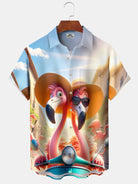 Alohadaddy Hawaii Flamingo Print Art Button Stretch Large Size Men's Shirt