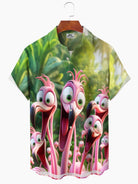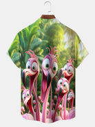 Alohadaddy Hawaii Resort Style Graffiti Flamingo Print Art Buttons Stretch Large Size Men's Shirt