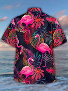 Men's Botanical Flamingo Print Casual Short Sleeve Hawaiian Shirt