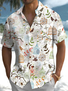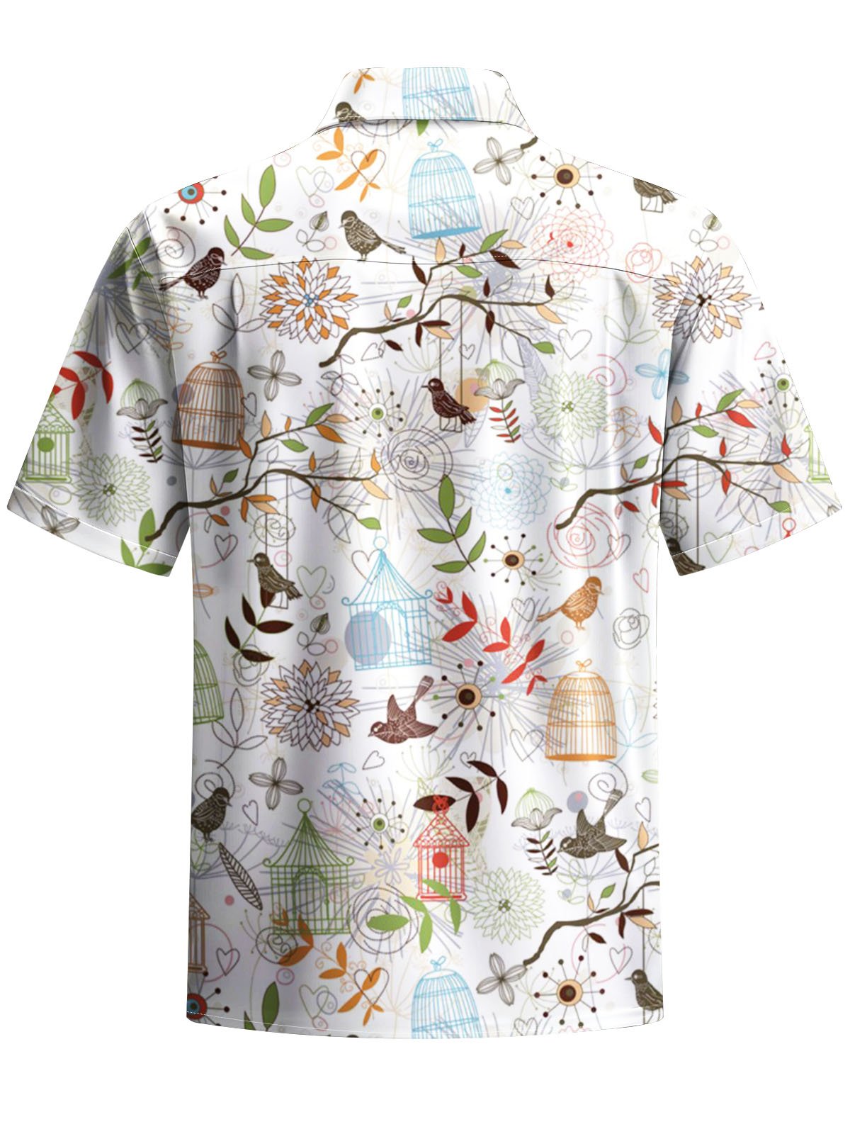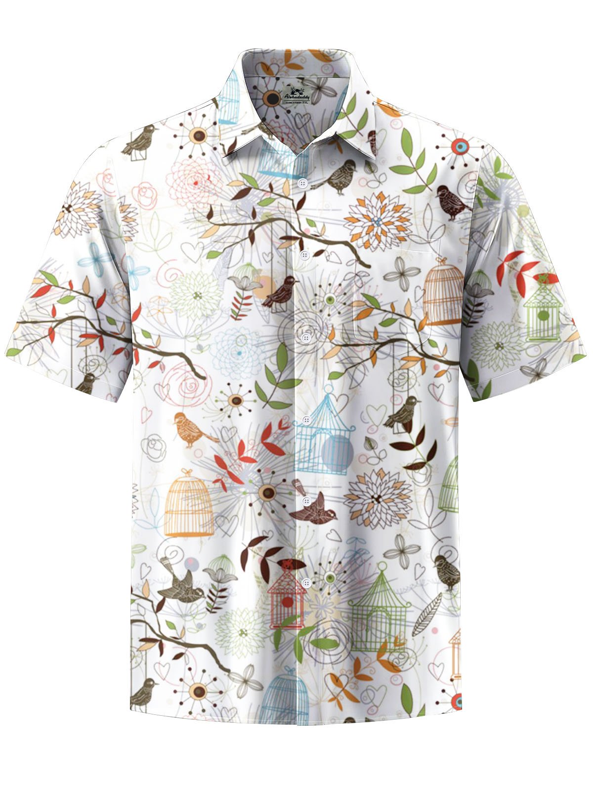 Alohadaddy® Casual Bird Art Print Stretch Pocket Men's Short Sleeve Shirt Big & Tall