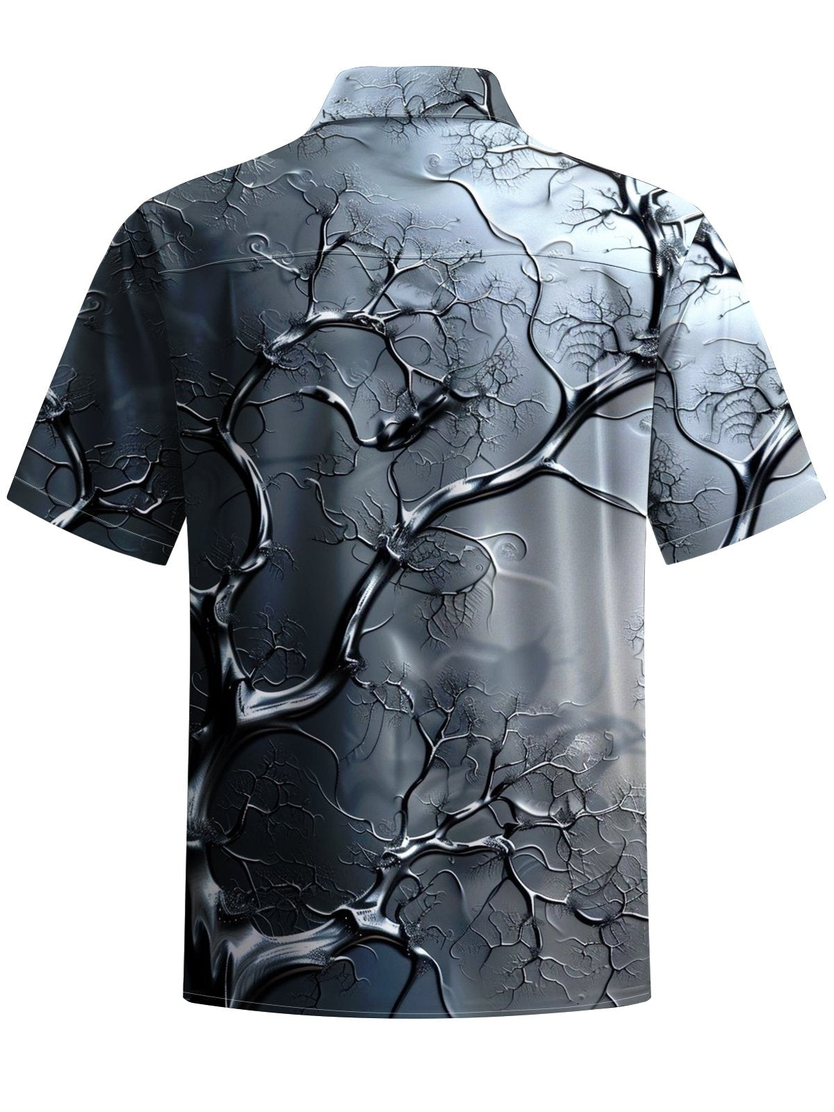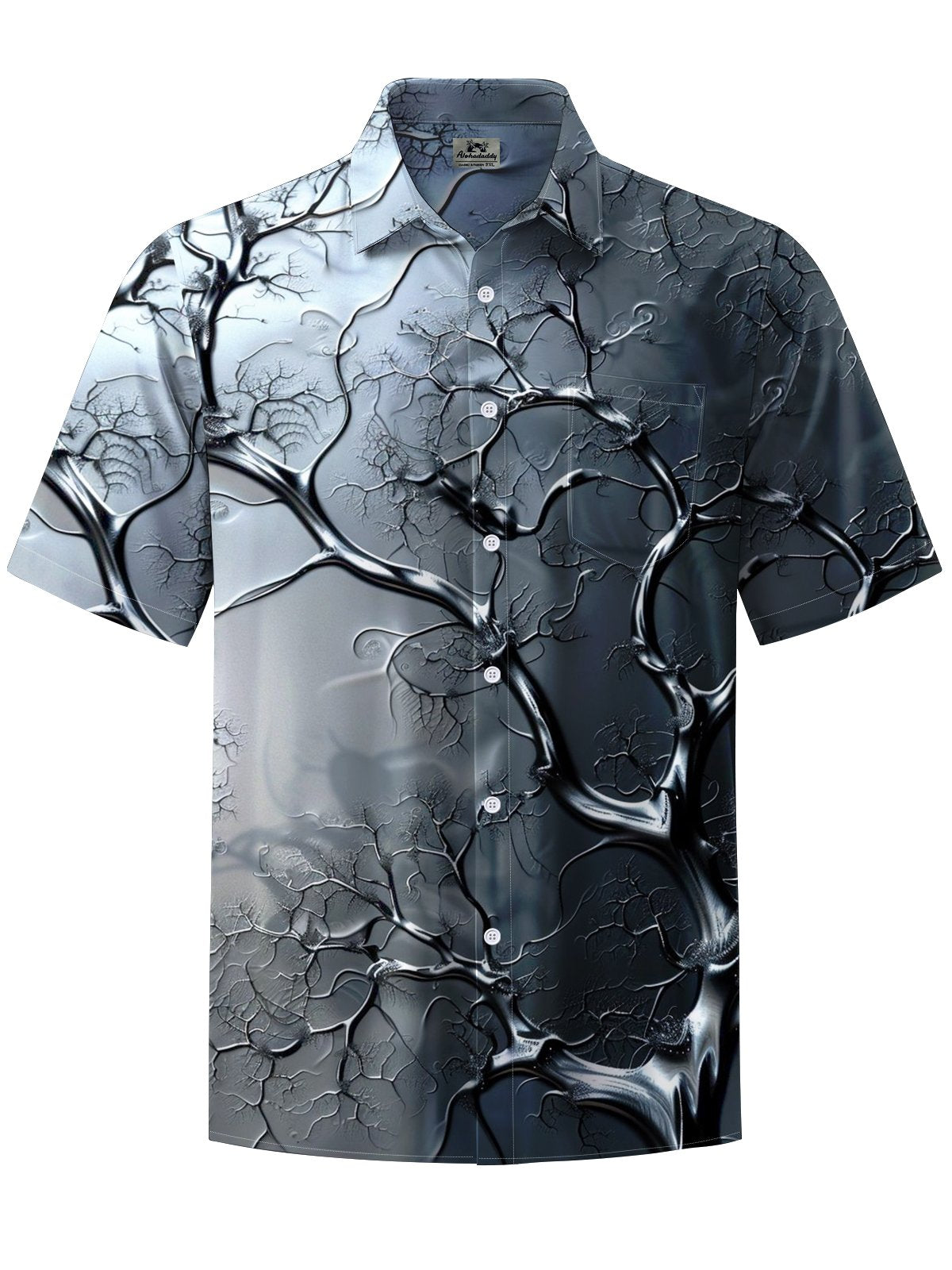 Alohadaddy® Casual Branch Art Print Chest Pocket Men's Stretch Short Sleeve Shirt Big & Tall