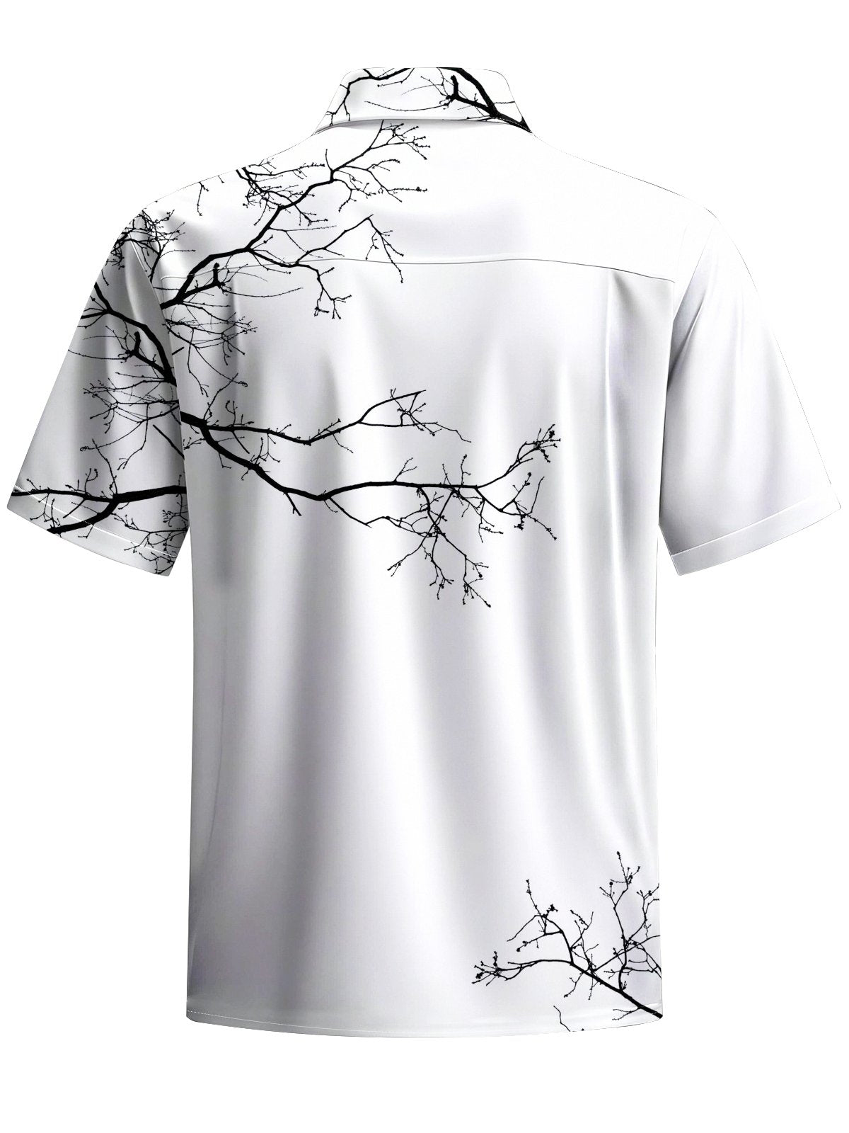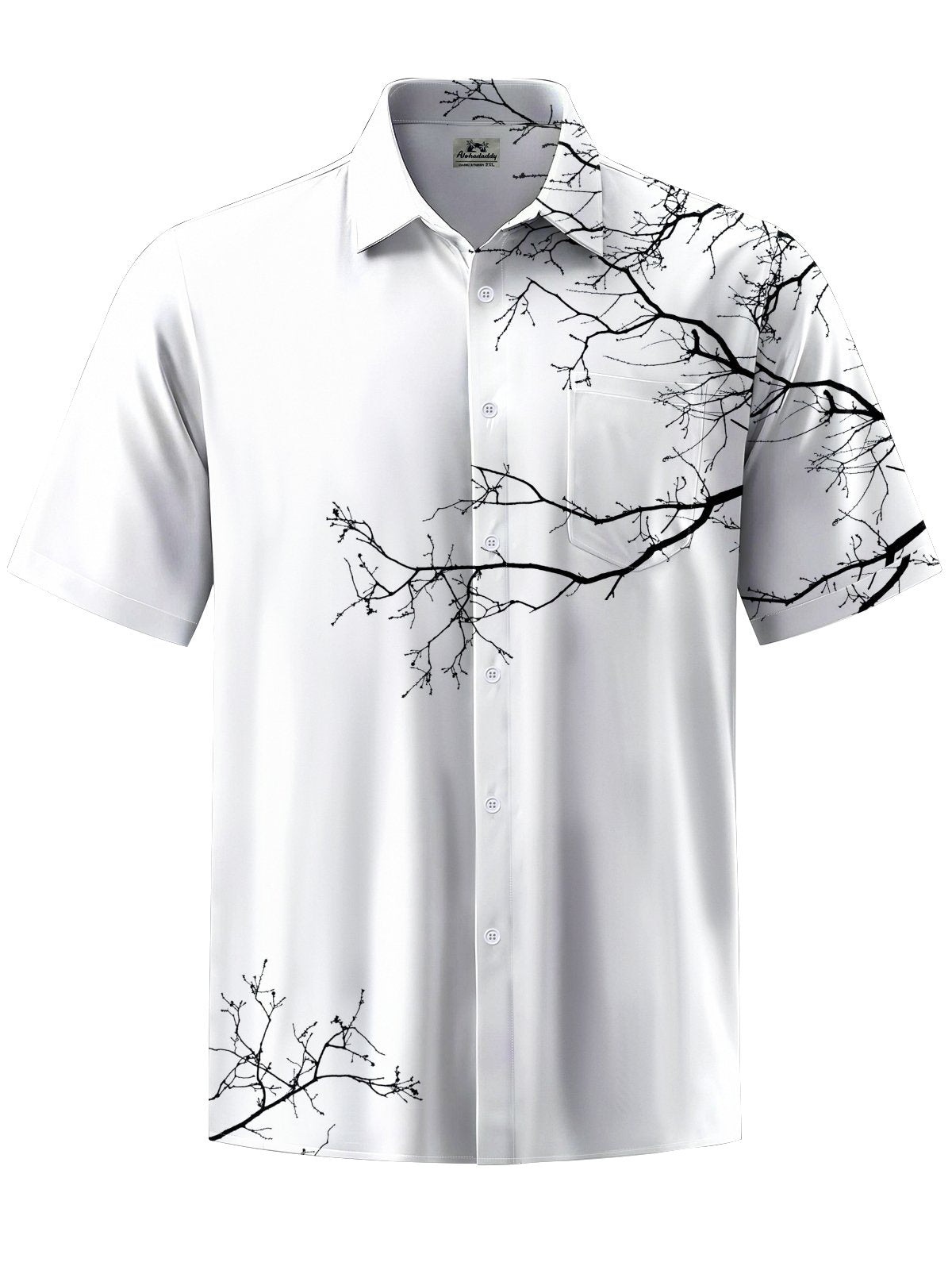 Alohadaddy® Casual Branch Painting Art Print Chest Pocket Men's Short Sleeve Shirt Big & Tall