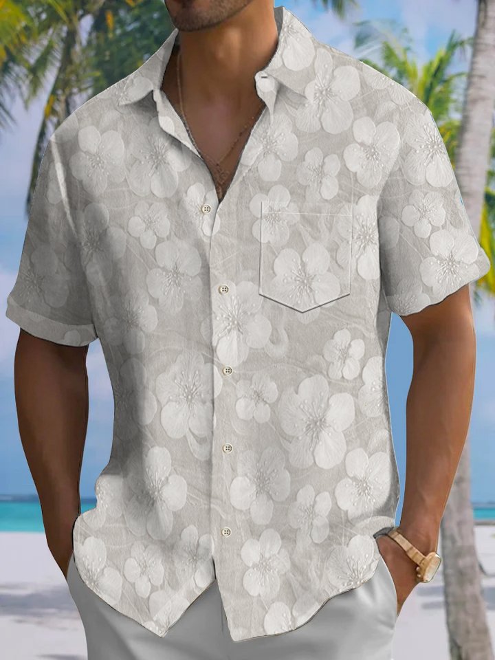 Alohadaddy® Casual Floral Art Print Chest Pocket Men's Short Sleeve Shirt Big & Tall