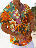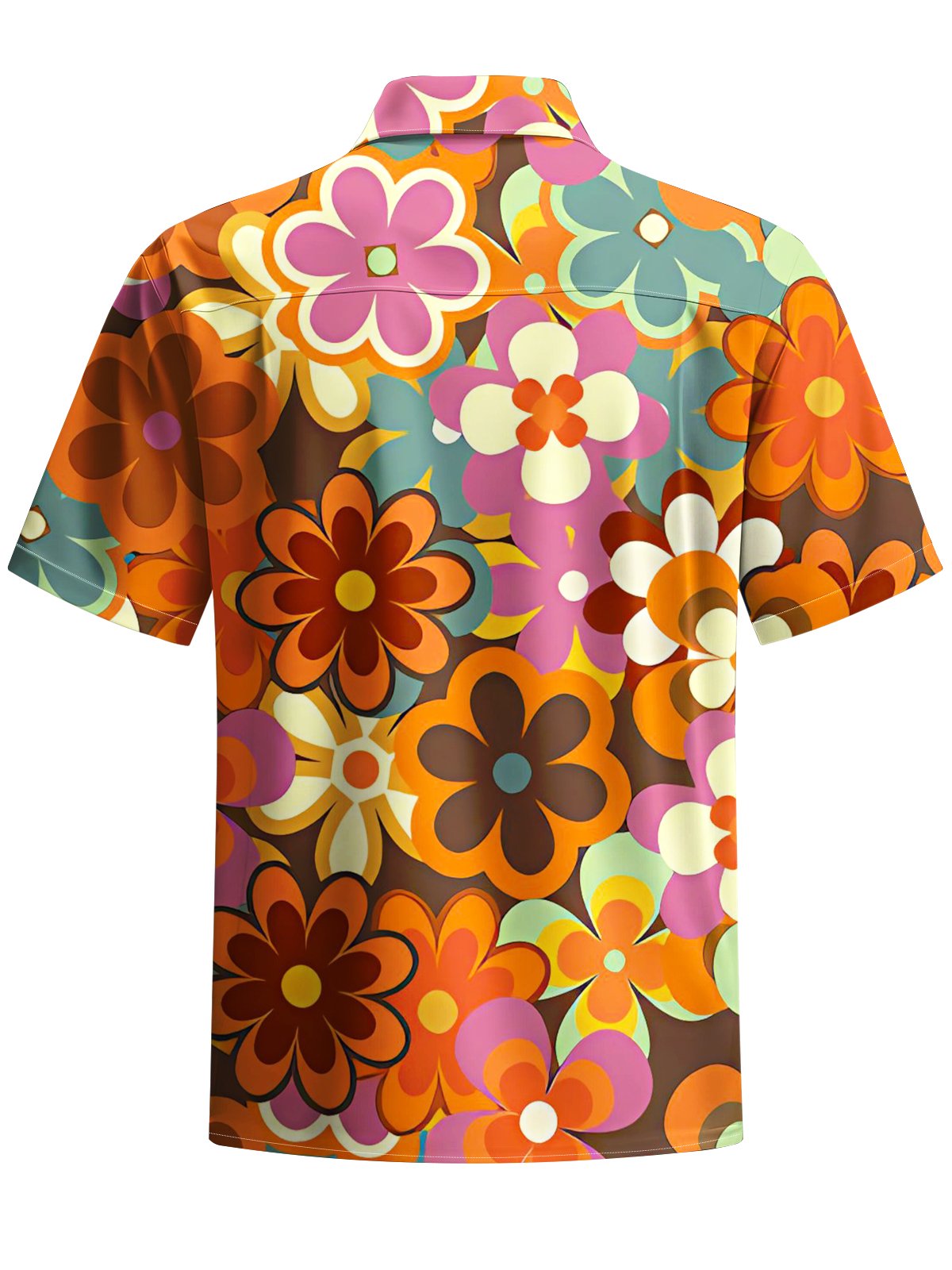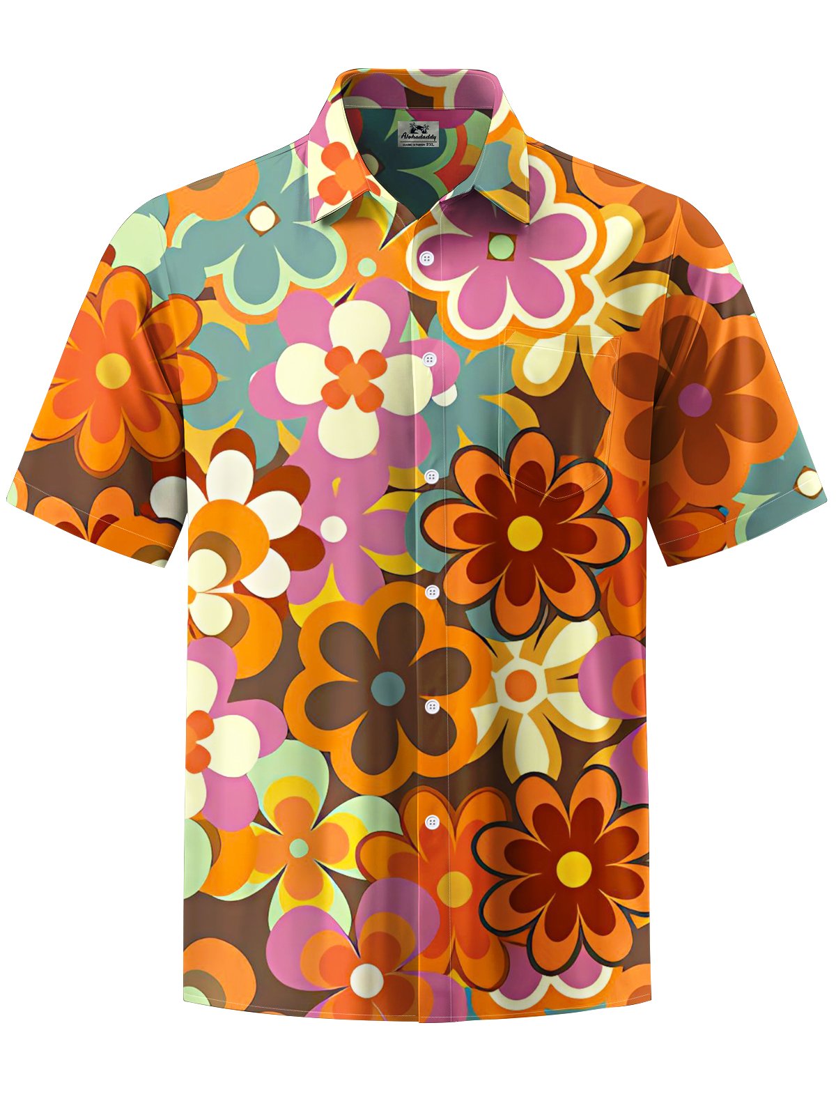 Alohadaddy® Casual Floral Art Print Chest Pocket Men's Short Sleeve Shirt Big & Tall