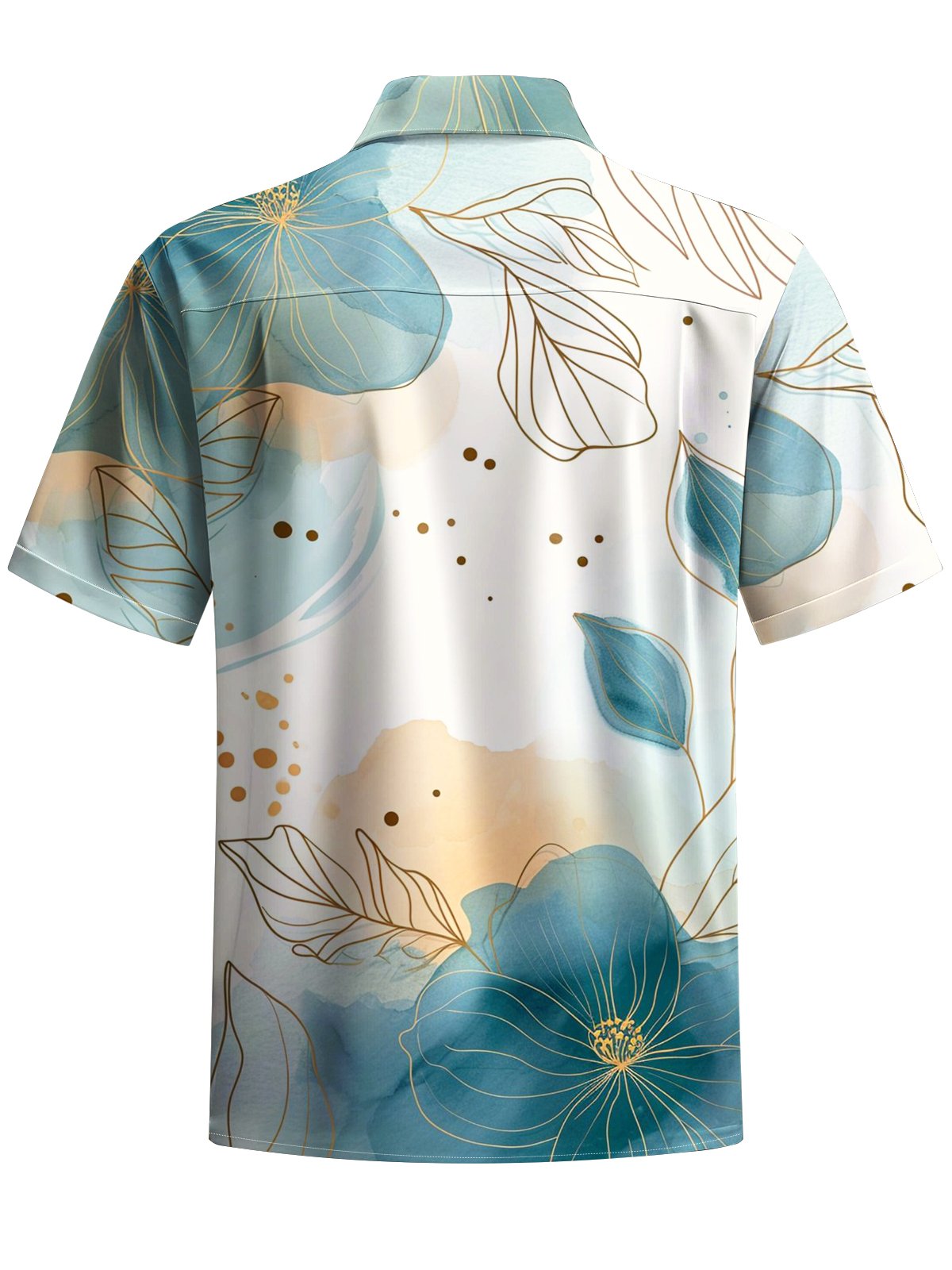 Alohadaddy® Casual Floral Art Print Chest Pocket Men's Short Sleeve Stretch Shirt Big & Tall