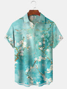Alohadaddy® Casual Floral Art Print Chest Pocket Stretch Hawaiian Short Sleeve Shirt Big & Tall