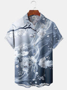 Alohadaddy® Casual Floral Art Print Moisture Wicking Chest Pocket Stretch Oversized Hawaiian Shirt