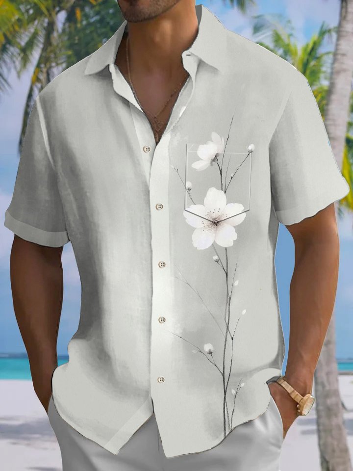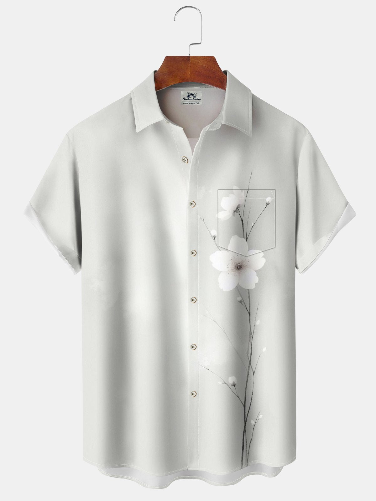 Alohadaddy® Casual Floral Art Print Pockets Wicking Hawaiian Shirt Big & Tall