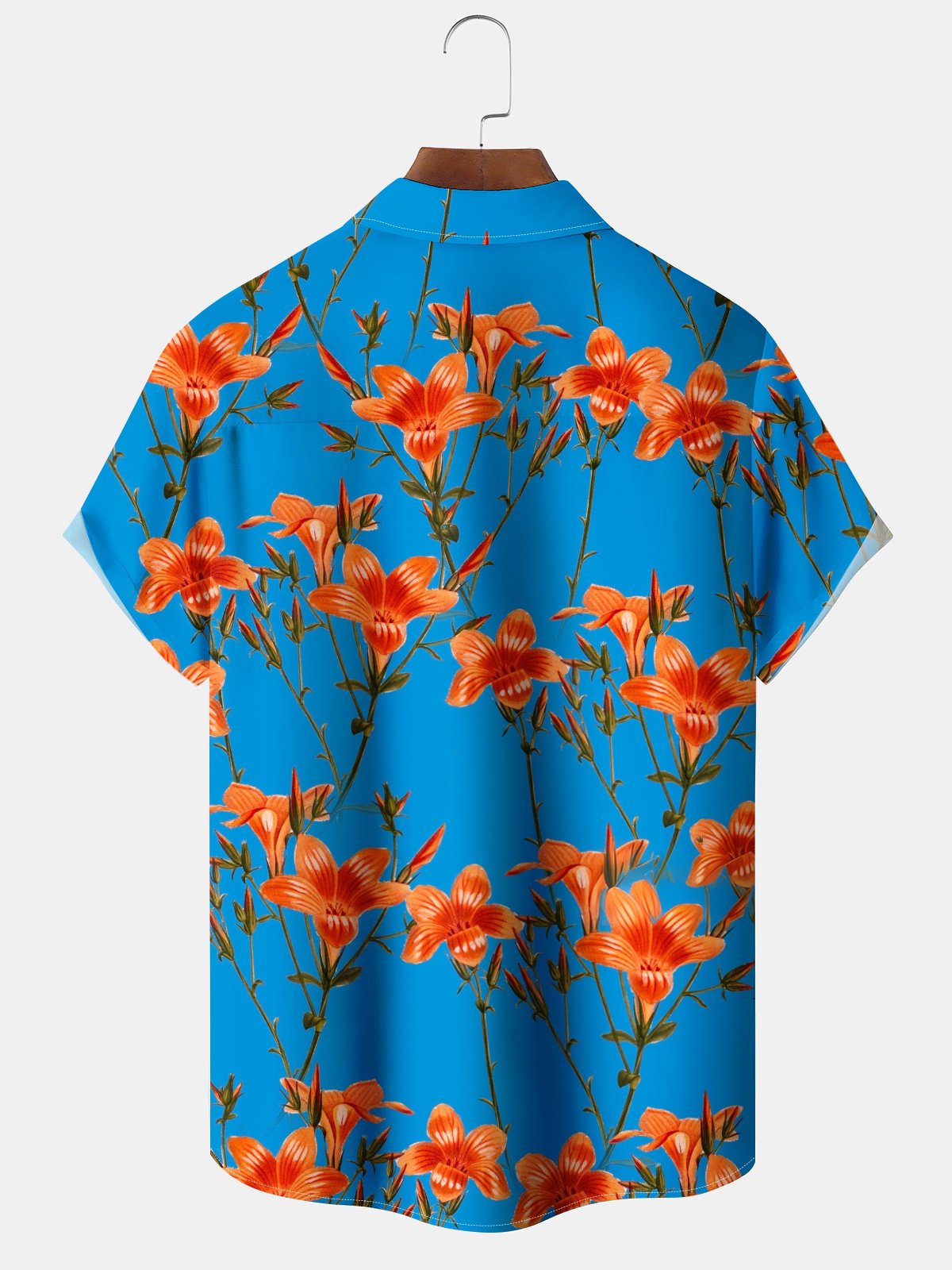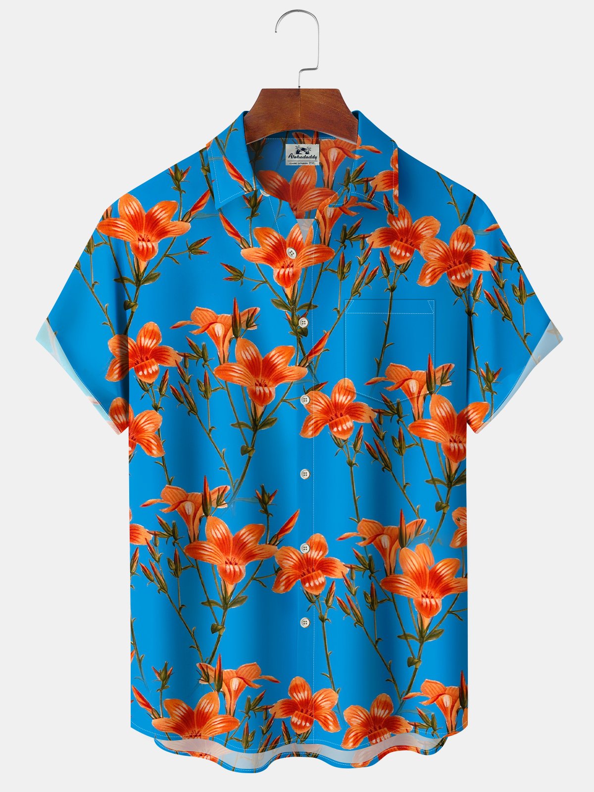 Alohadaddy® Casual Floral Art Print Pockets Wicking Hawaiian Shirt Big & Tall
