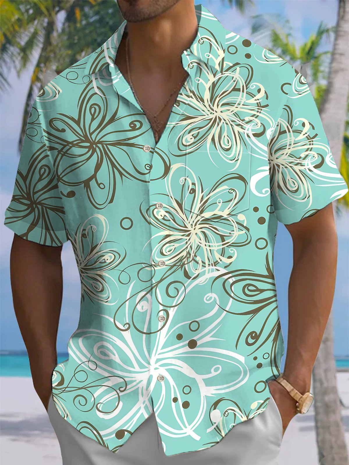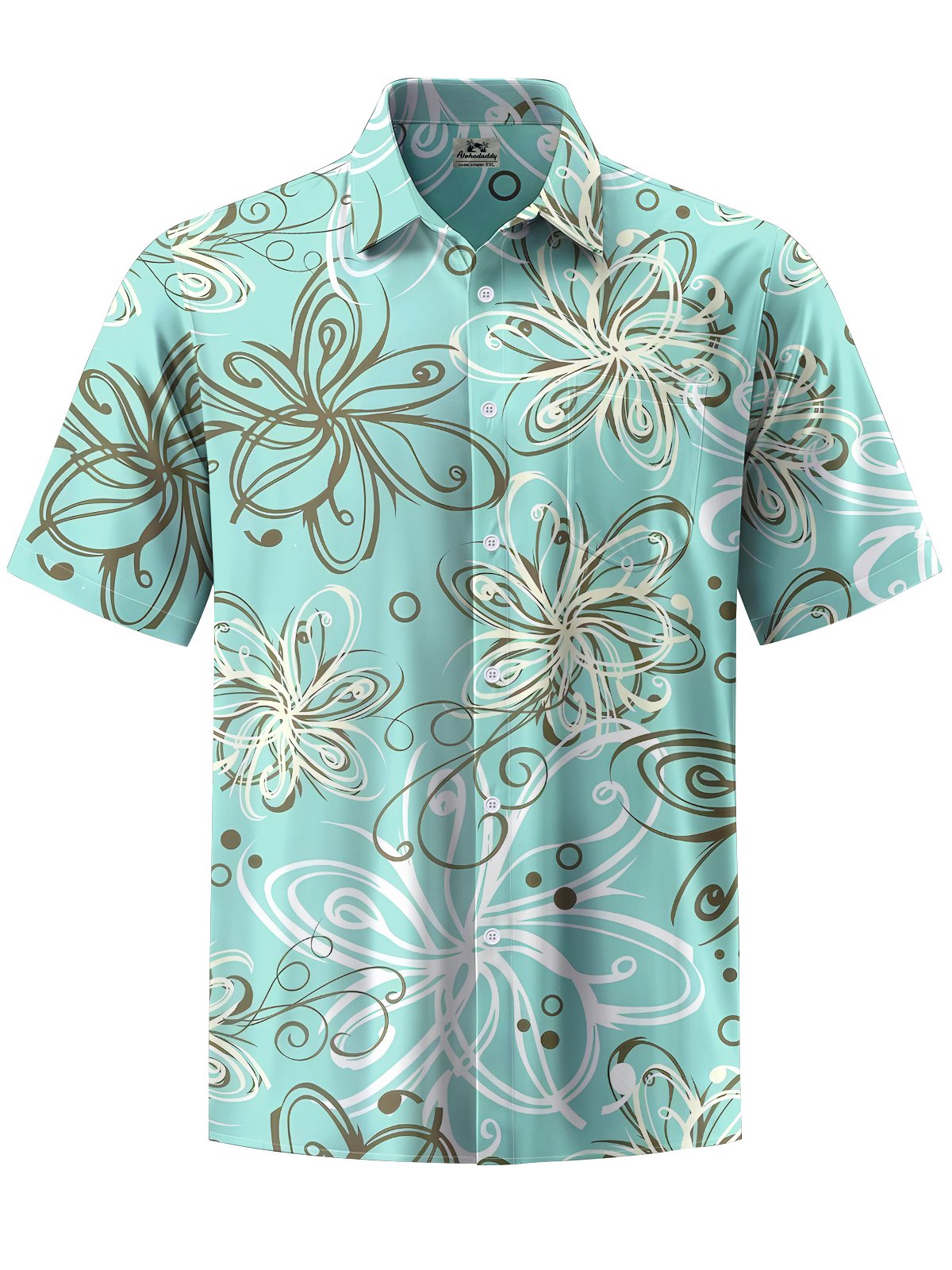 Alohadaddy® Casual Floral Print Art Pocket Stretch Men's Short Sleeve Shirt Big & Tall