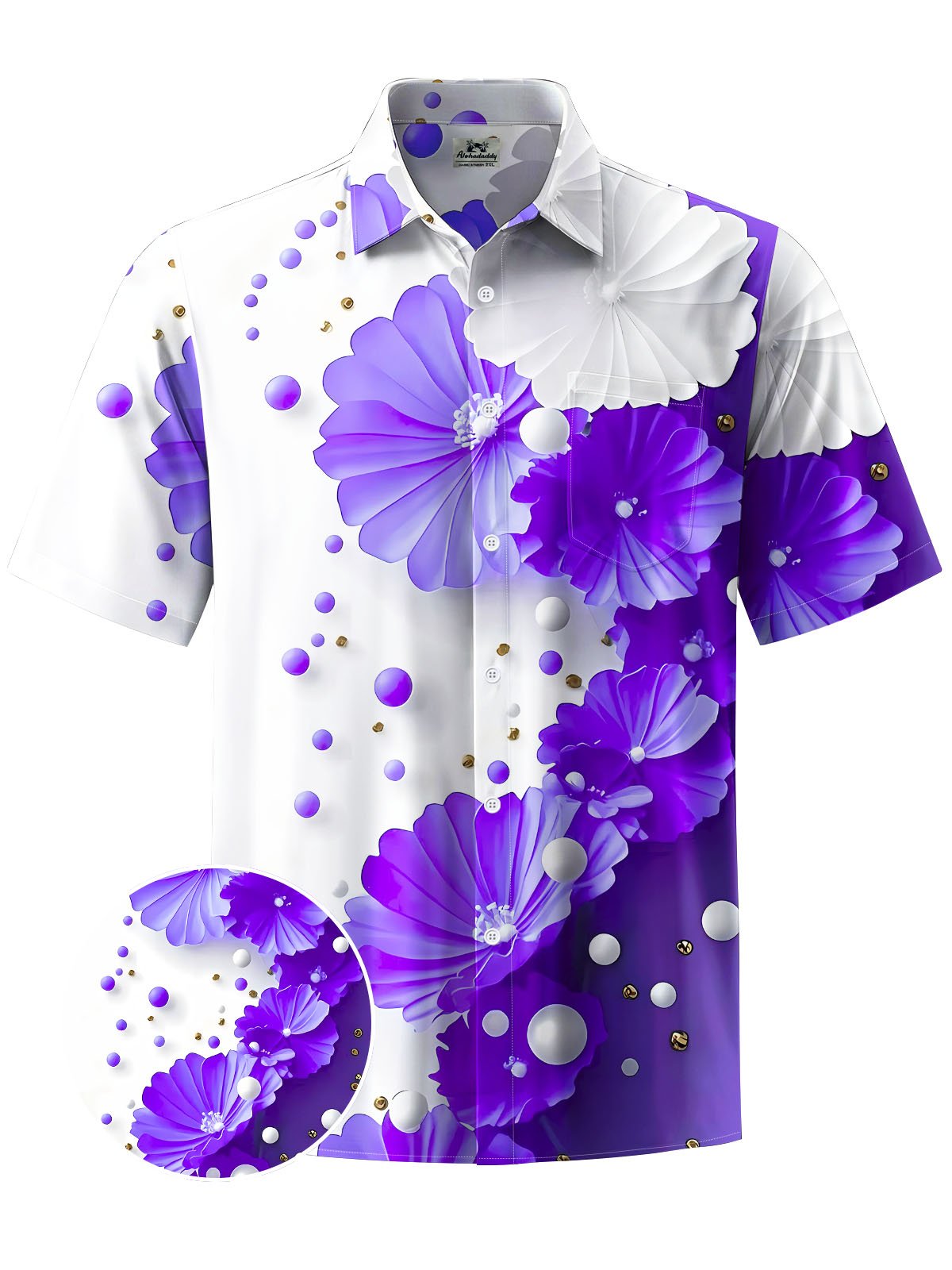 Alohadaddy® Casual Floral Print Chest Pocket Men's Short Sleeve Shirt Big & Tall