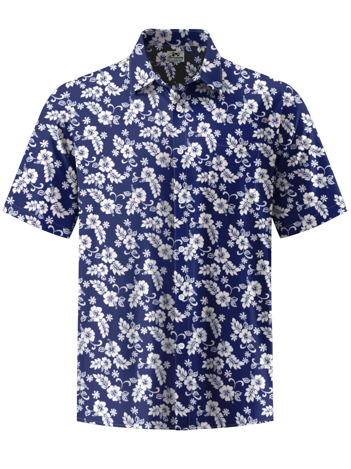 Alohadaddy® Casual Floral Print Pocket Stretch Men's Short Sleeve Shirt Big & Tall