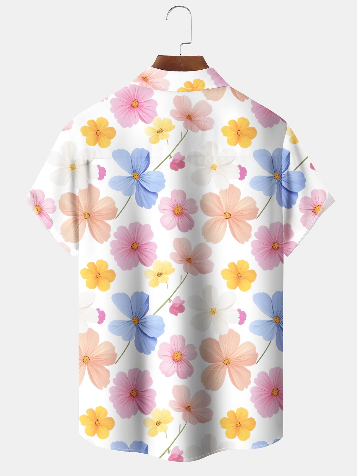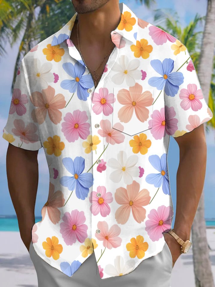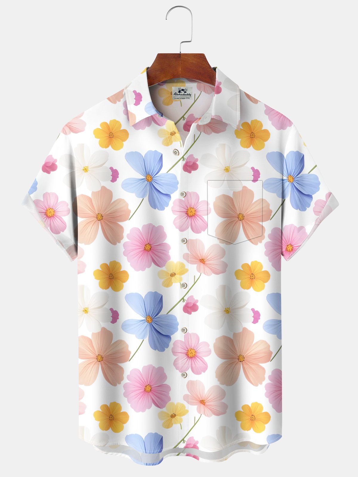 Alohadaddy® Casual Flowers Art Print Pockets Stretch Hawaiian Men's Short Sleeve Shirt Big & Tall